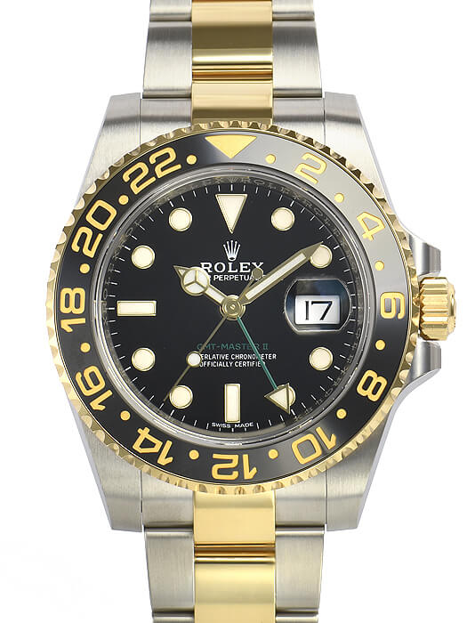 2007年の登場以来ロングセラーモデルとして人気を集めた黒ベゼル×黒文字盤の「116710LN」が2019年に生産終了となり、現行モデルは精度と耐久性が向上した新世代ムーブメントCal.3285を搭載し、昼と夜が瞬時に判別できるよう色分けされた2トーンベゼルモデルのみがラインアップされています。