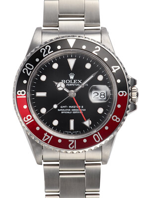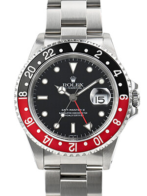 航空技術の発展に伴って路線の拡大が進んだ1950年代に、世界各地へフライトする航空会社のパイロットに向けて作られた、プロフェッショナルスポーツモデルが「GMTマスター」です。24時間表示ベゼルと24時間針を搭載し、ローカルタイムとホームタイムの2つのタイムゾーンが同時に一瞬で読み取れます。1983年には、24時間表示ベゼルと24時間針に加え、独立で操作できる短針によって、最大3つのタイムゾーンが表示可能な「GMTマスターII」が追加されました。