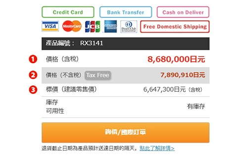 ❷ 免稅價格(10%免稅價格)