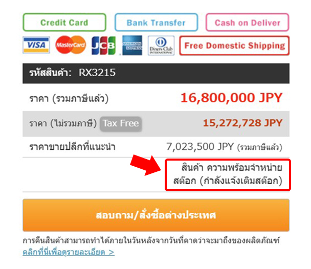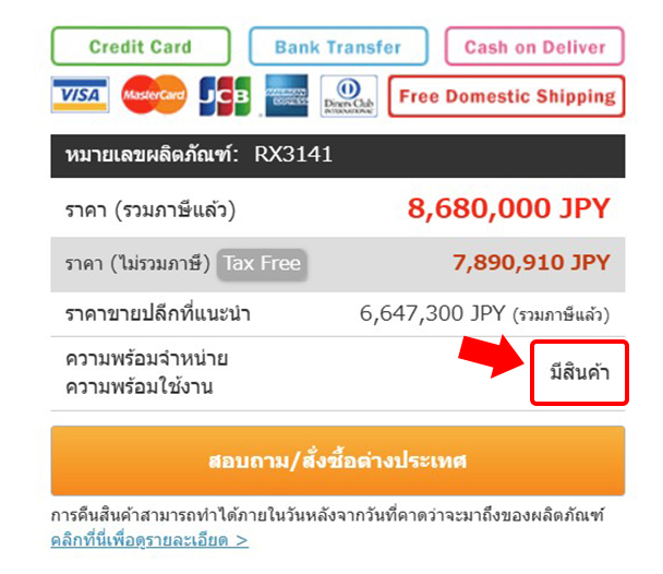 สถานะสินค้าในสต็อกจะแสดงเป็น 「มีในสต็อก(In Stock)」 หรือ 「หมดสต็อก (Out of Stock)」 บนเว็บไซต์ของเรา
