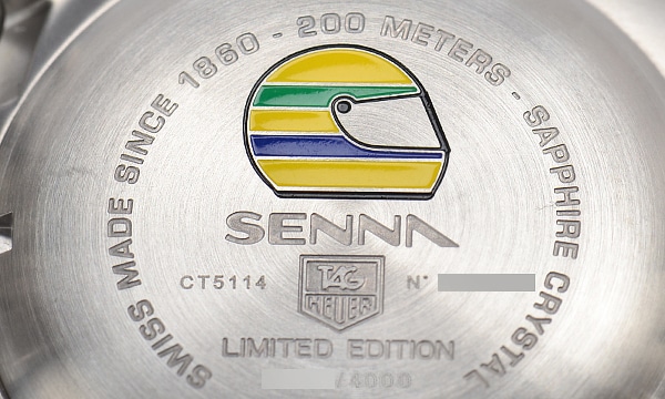 2003年に4000本限定で作られた伝説のF1ドライバー「アイルトン・セナ」の限定モデルです。ダイヤルには3時位置のマークの他にセナの名前が隠されてプリントされています。