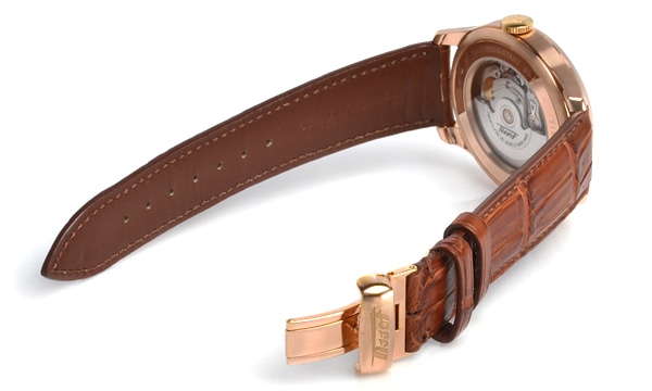 なかなか雰囲気のあるティソの3針モデルです。ケース素材には18金のピンクゴールドを採用しており、華やかかつクラシカルなスタイルの一本になっています。
