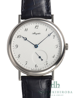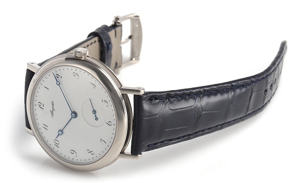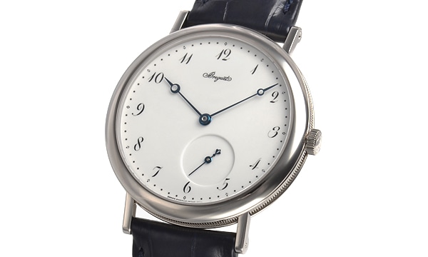 クラシカルなデザインはそのままに、ケースサイズは40.0mmと、ブレゲにしては大きめサイズの「クラシック 5140」。伝統のコインエッジ、ブルースチールのブレゲ針、そして炉焼きホワイトエナメルの文字盤など、時計ファンにはたまらない作りになっています。