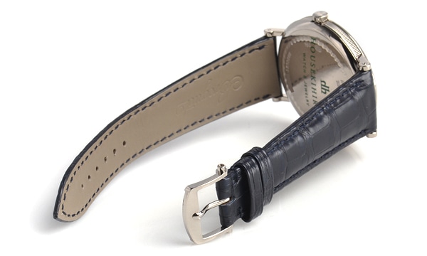 当店にてオーバーホールと外装の仕上げを行い、ストラップは純正のクロコストラップと交換しています。