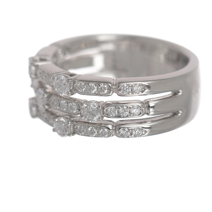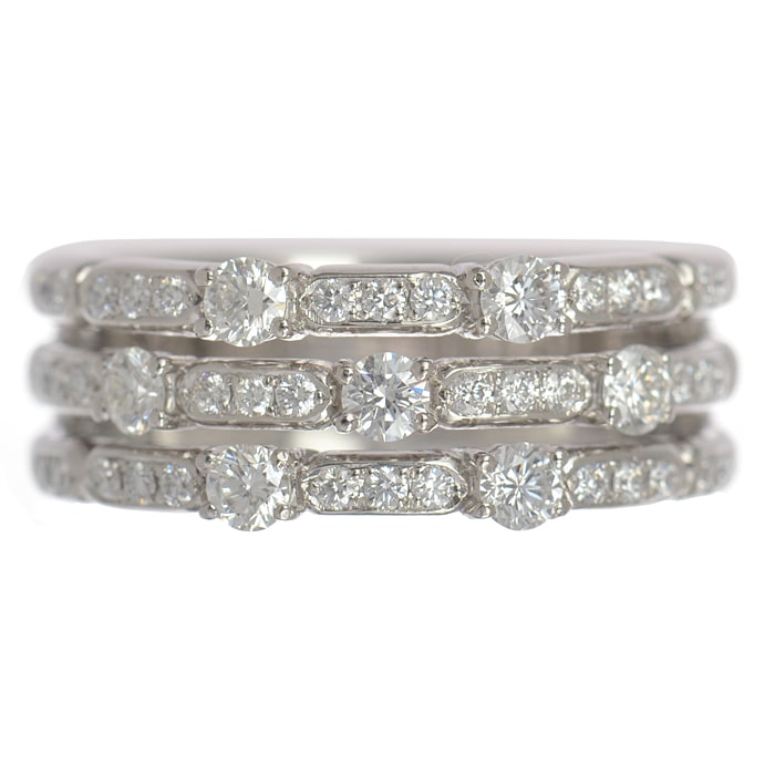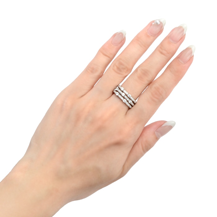 日本の女性に最も適した造形や質感を追求し、日常生活の中でも違和感なく楽しめることを目標としているブランド【星の砂】。良質なダイヤモンドが輝くプラチナリングは、3本重ね着けしているかのようなデザインが特徴。