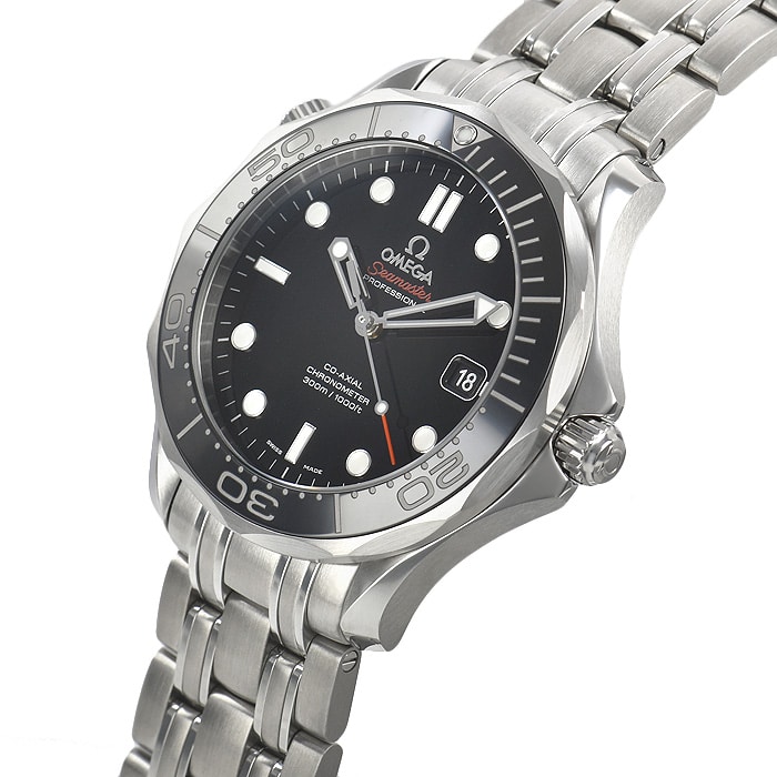 オメガのダイバーウォッチ「シーマスター プロフェッショナル」に、独自のエスケープメントシステムであるコーアクシャルを搭載したモデルです。10時位置のヘリウムガスエスケープバルブは、飽和潜水時のヘリウムガスの膨張によるケース破損を防いでくれます。