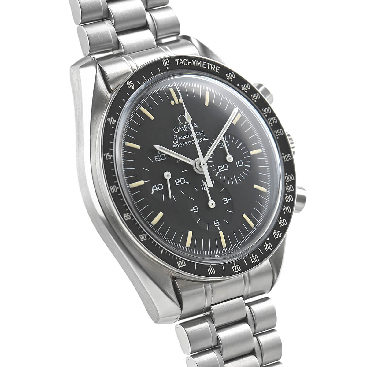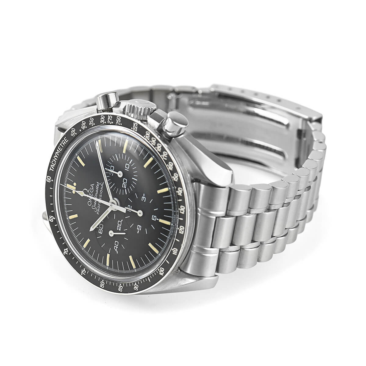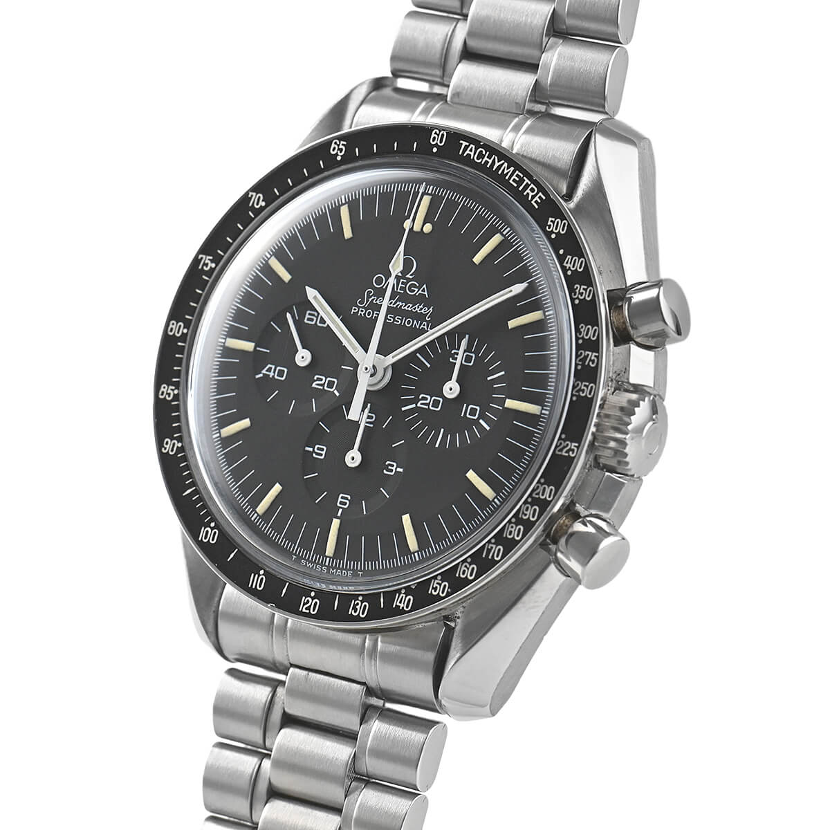 時計好きなら誰しもが知っている定番モデル「スピードマスター・プロフェッショナル」。ダイヤルの「r」が下がりRと呼ばれるタイプで、トリチウムの夜光など、ヴィンテージらしい雰囲気が面白い一本です。