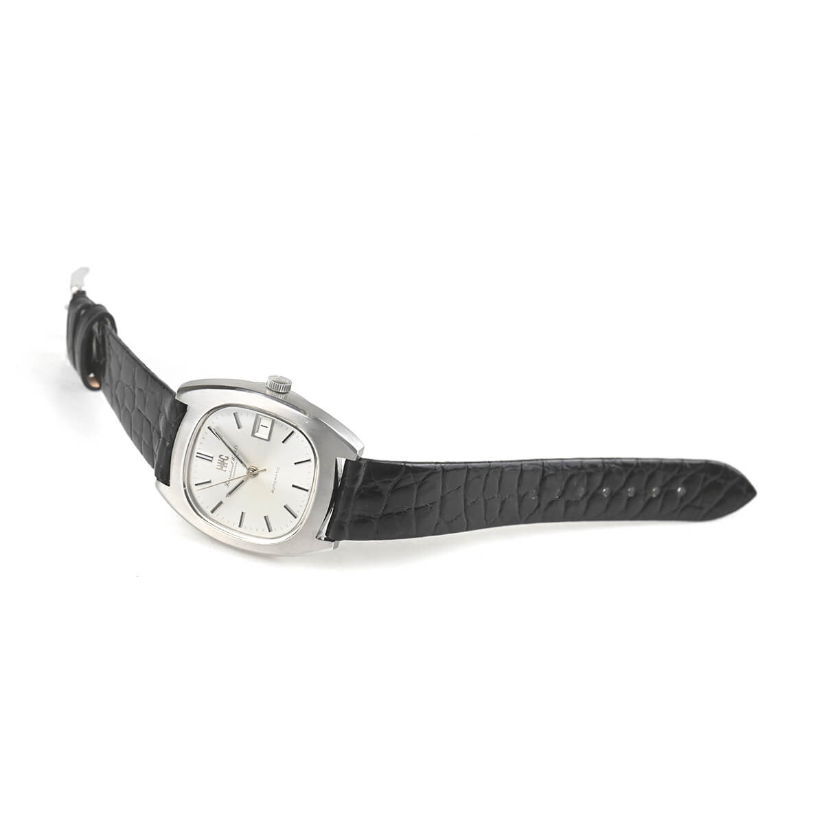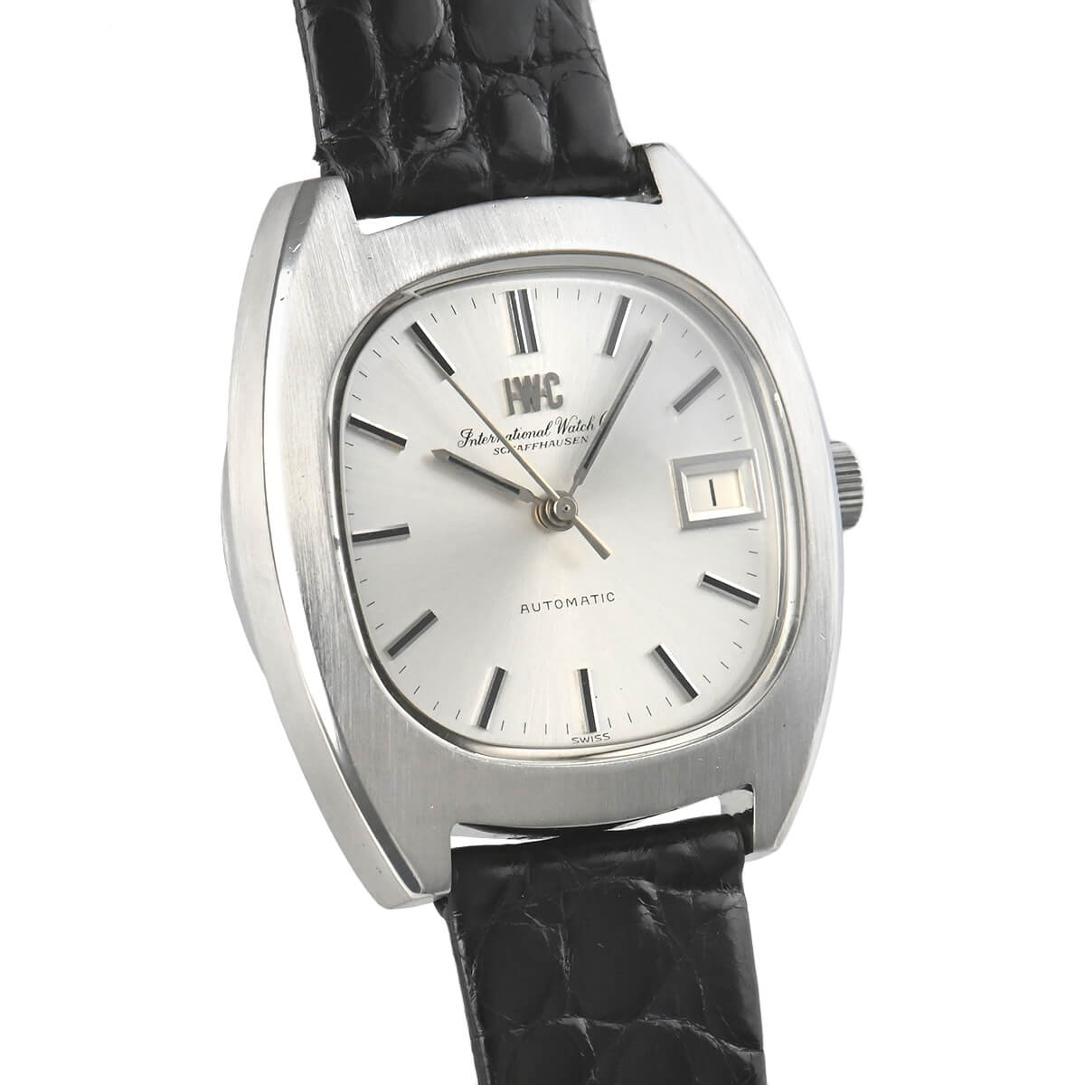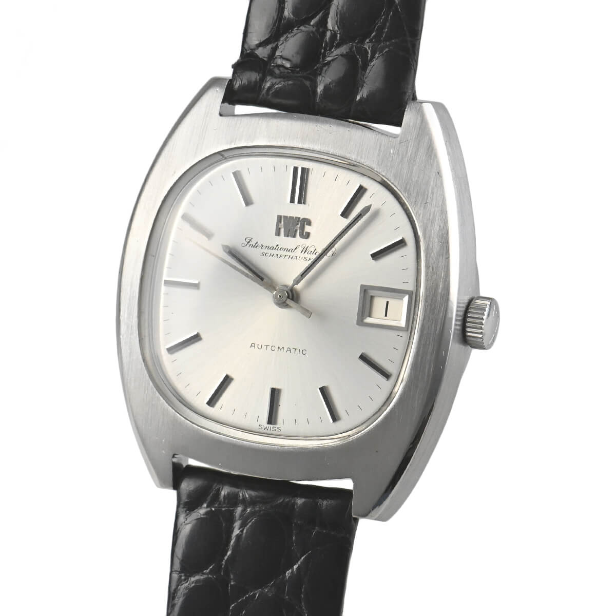 筆記体のロゴの「IWC」、魚マーク入りのリューズなどアンティークとしての魅力を感じさせる一本です。