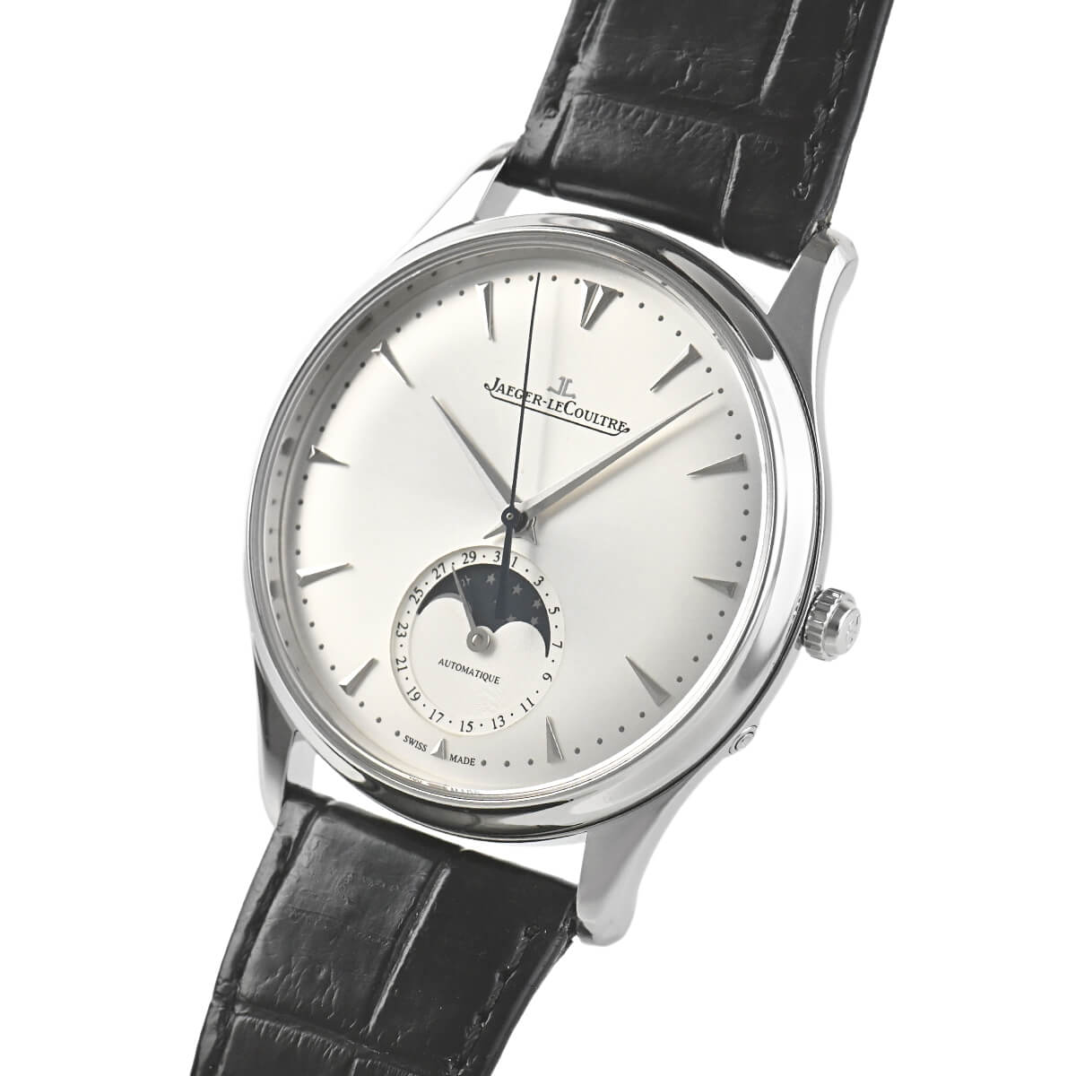 厚さがたったの9.9mmのCal.925を、ウルトラスリムのケースに搭載した「マスターウルトラスリム ムーン」。自動巻きであり、デイト表示とムーンフェイズを持ちながらエレガントな薄型のケースに収めているのは、流石はジャガー・ルクルトです。