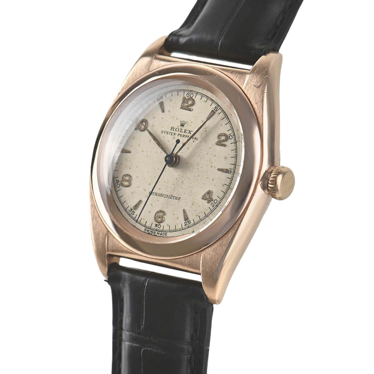 1946年頃製造の「Ref.3131」オイスターバブルバックが入荷致しました。珍しく当時の保証書とクロノメーターも付属しており、1947年4月にフランスで販売されたと思われます。※ギャラに記載のAVR=フランス語で4月