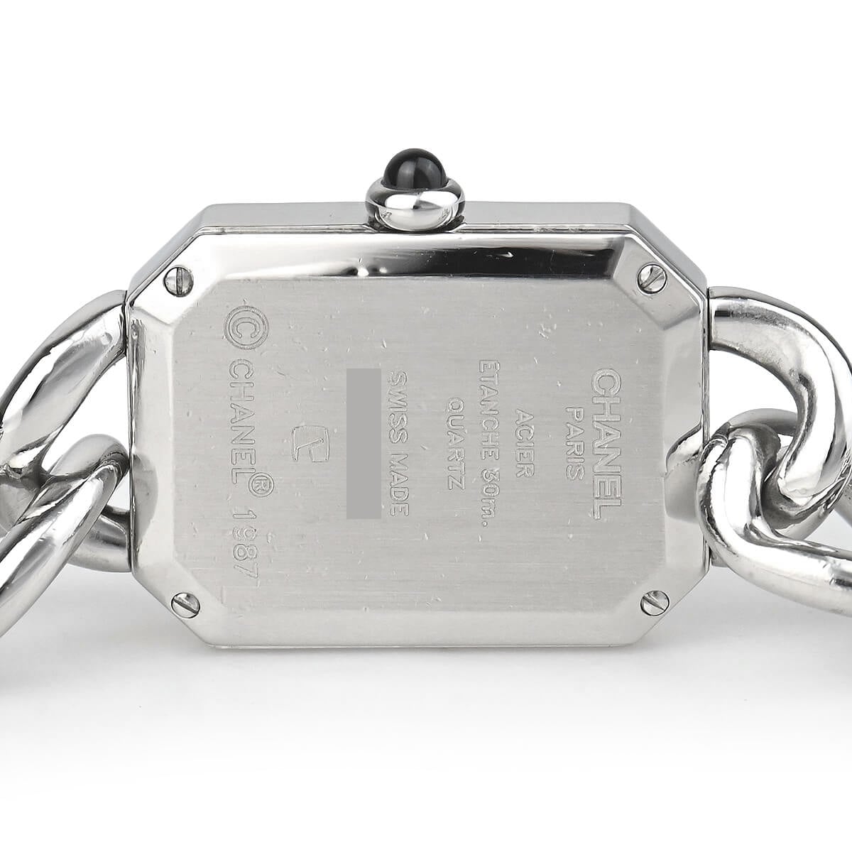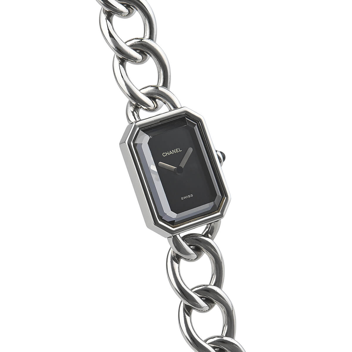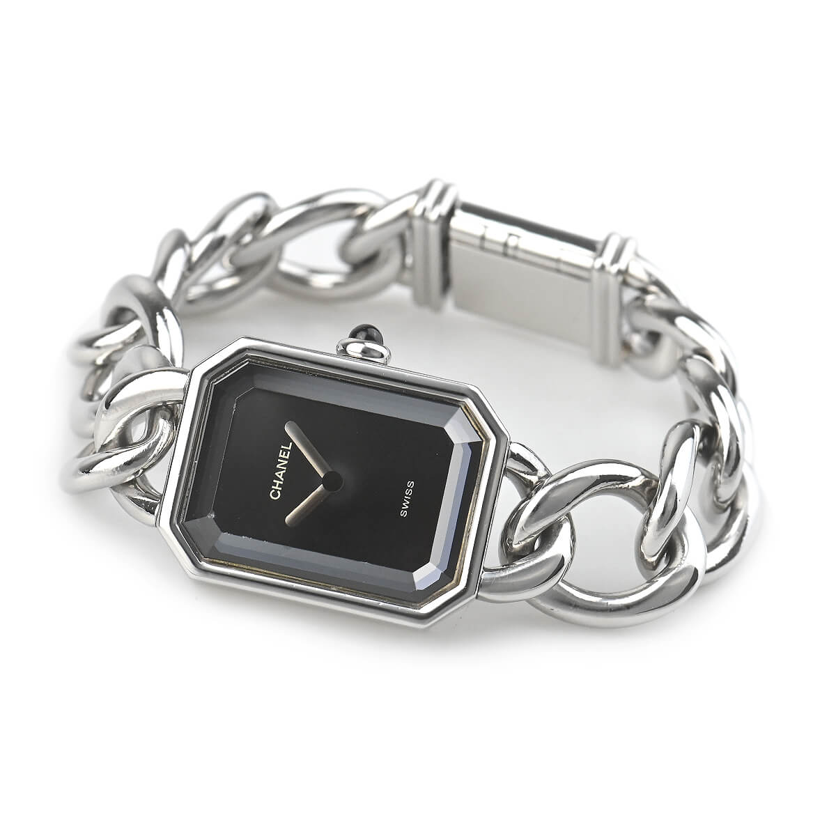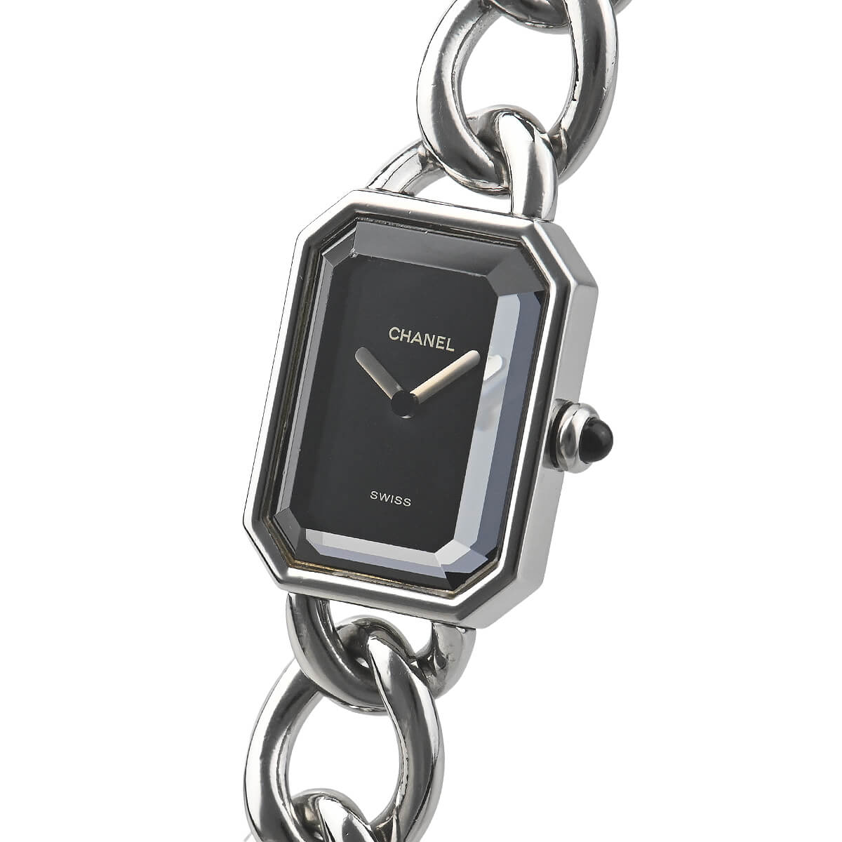 シャネルの永遠の定番モデル「プルミエール」。オートクチュールの世界においてアトリエ主任の女性を意味するこの時計は、シャネルがブティックを構えるヴァンドーム広場の形とシャネルのアイコンであるシャネルN°5のボトルストッパーからインスパイアーを受けデザインされました。