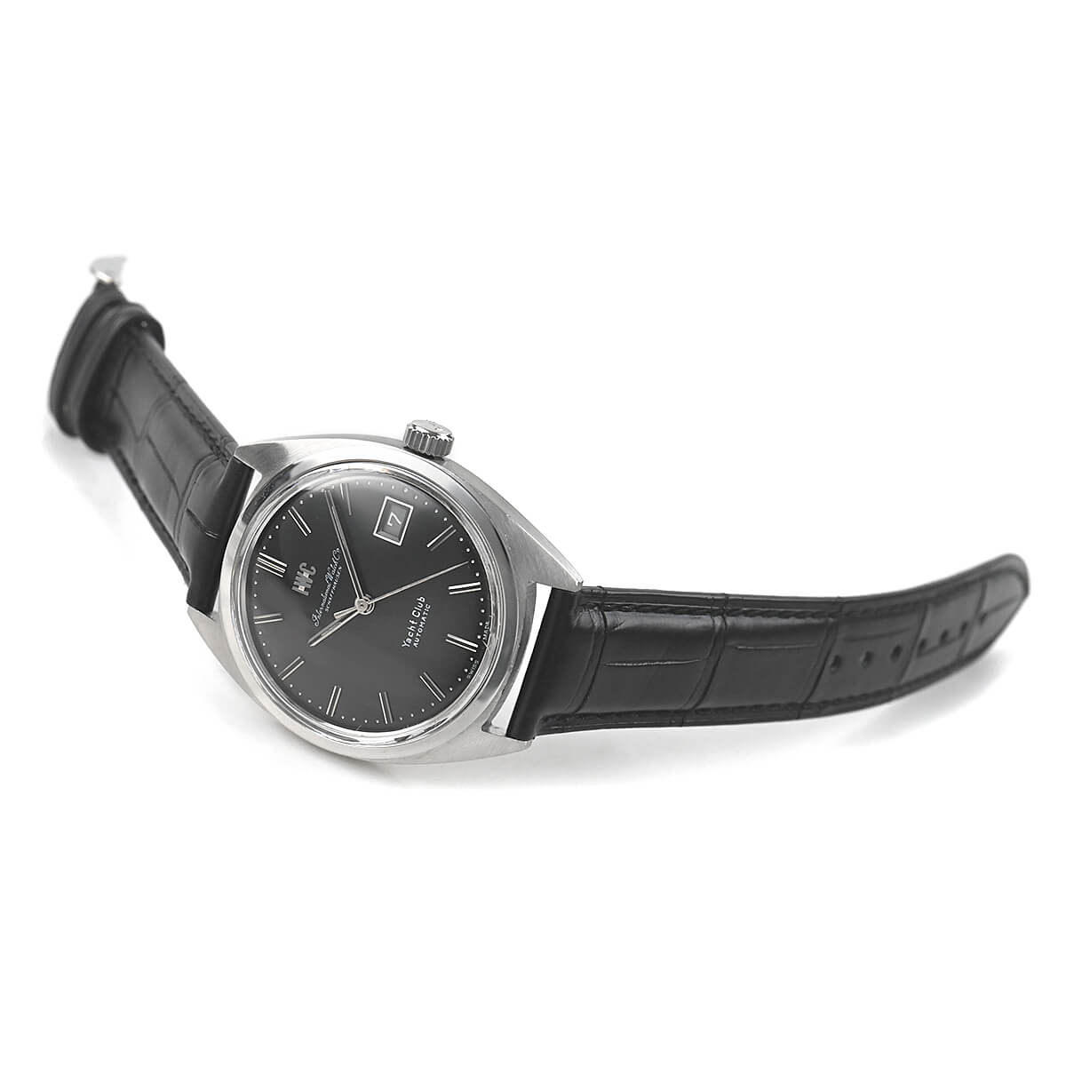 筆記体のロゴの「IWC」、魚マーク入りのリューズなどアンティークとしての魅力を感じさせる一本です。