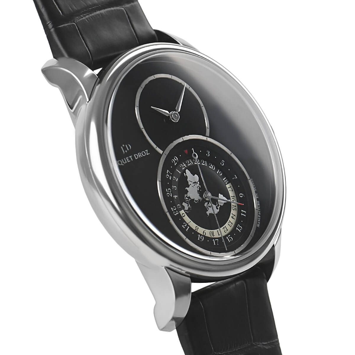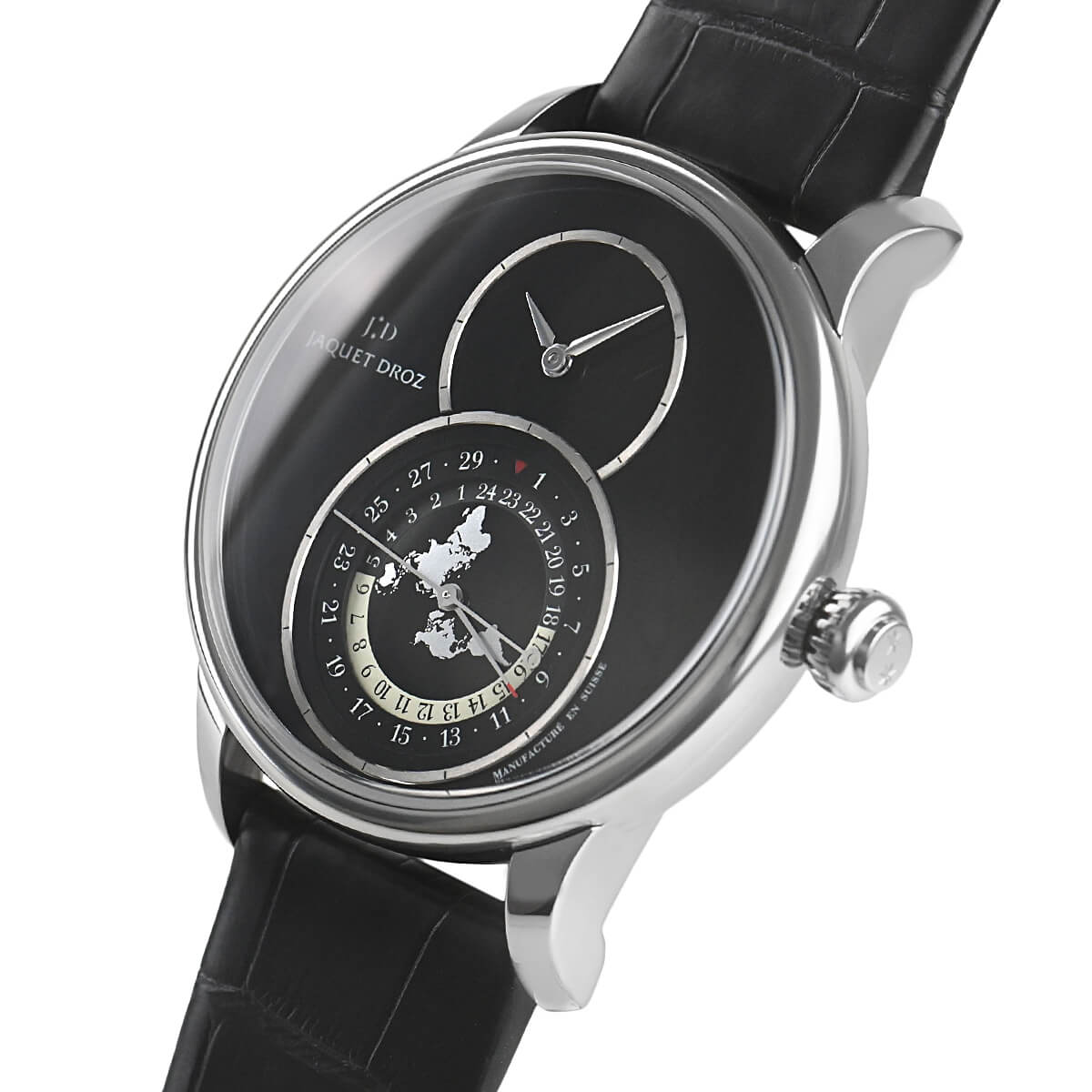 メインのダイヤルよりも大きなスモールセコンドが特徴の「グランセコンド」。ジャケ・ドロー独自の意匠であり、ブランドを代表する人気モデルです。
