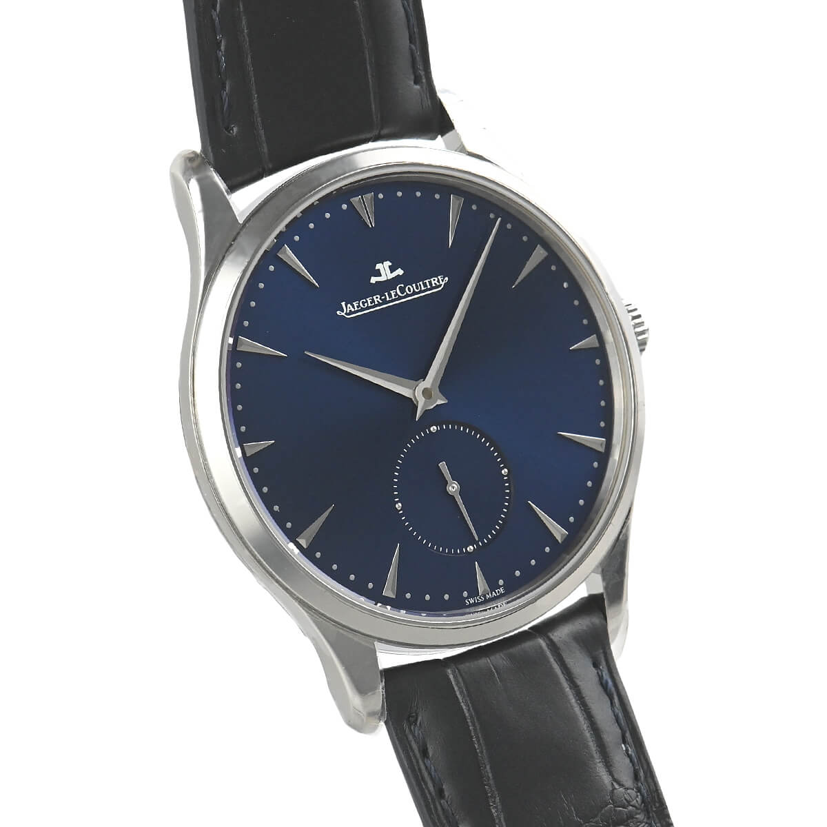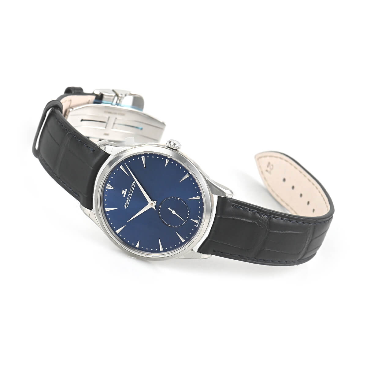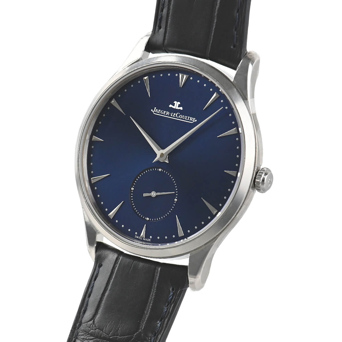 時間を知るという機能と優雅なデザインを組み合わせた「マスターグランド・ウルトラスリム」。こちらは2017年に加わった鮮やかなブルーダイアル。