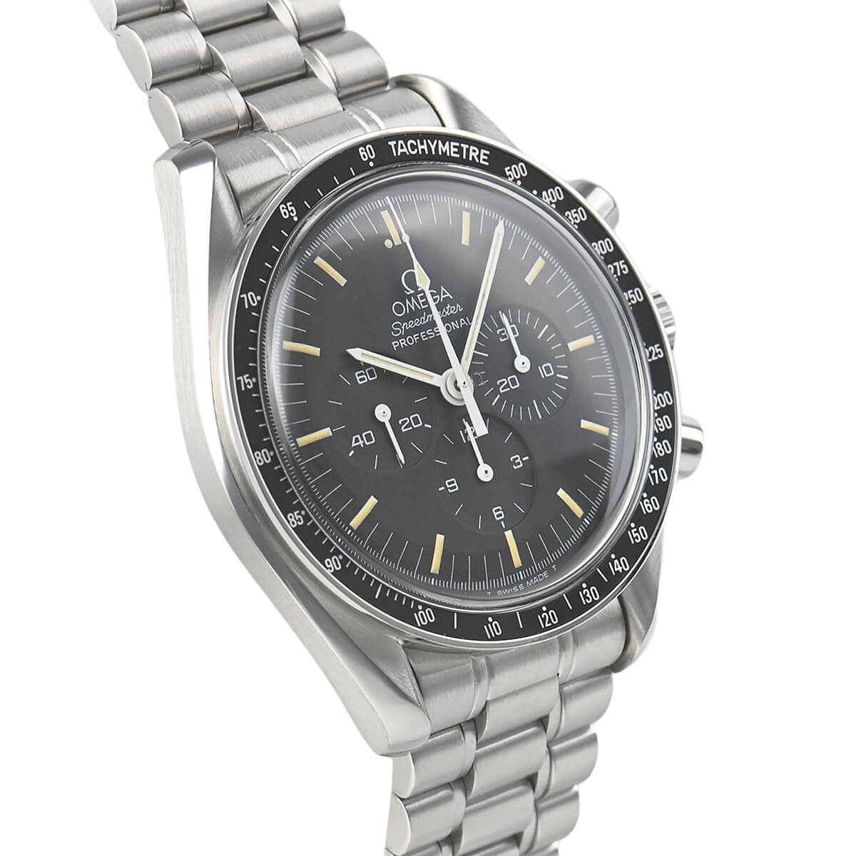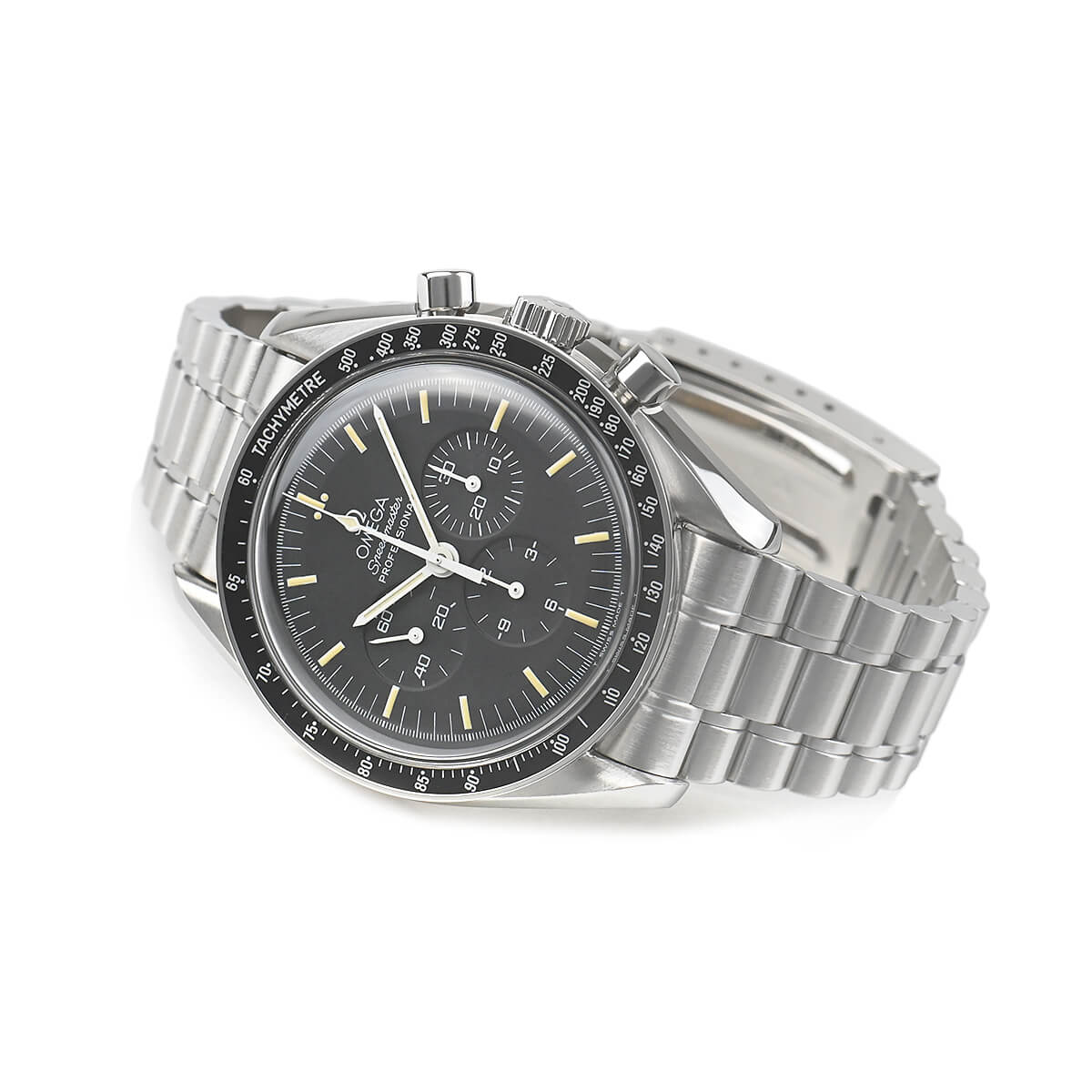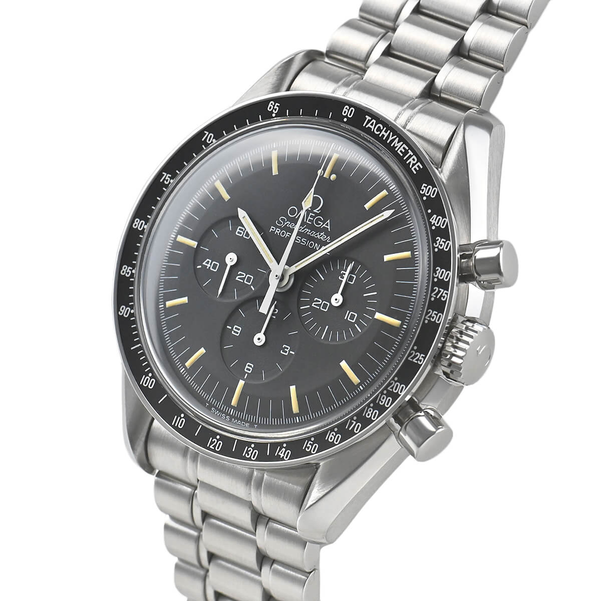 近年注目されている「スピードマスタープロフェッショナル」のトリチウム夜光モデルです。このモデルはシースルーバックのモデルとしては初期のモデルで、ムーブメントの仕上げが異なります。