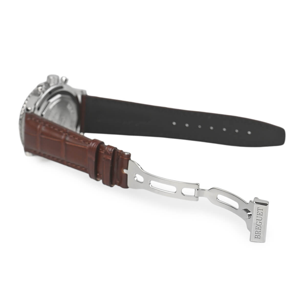元は軍用とはいえ、ブレゲ特有のコインエッジがアクセントとなり高級感を演出しています。