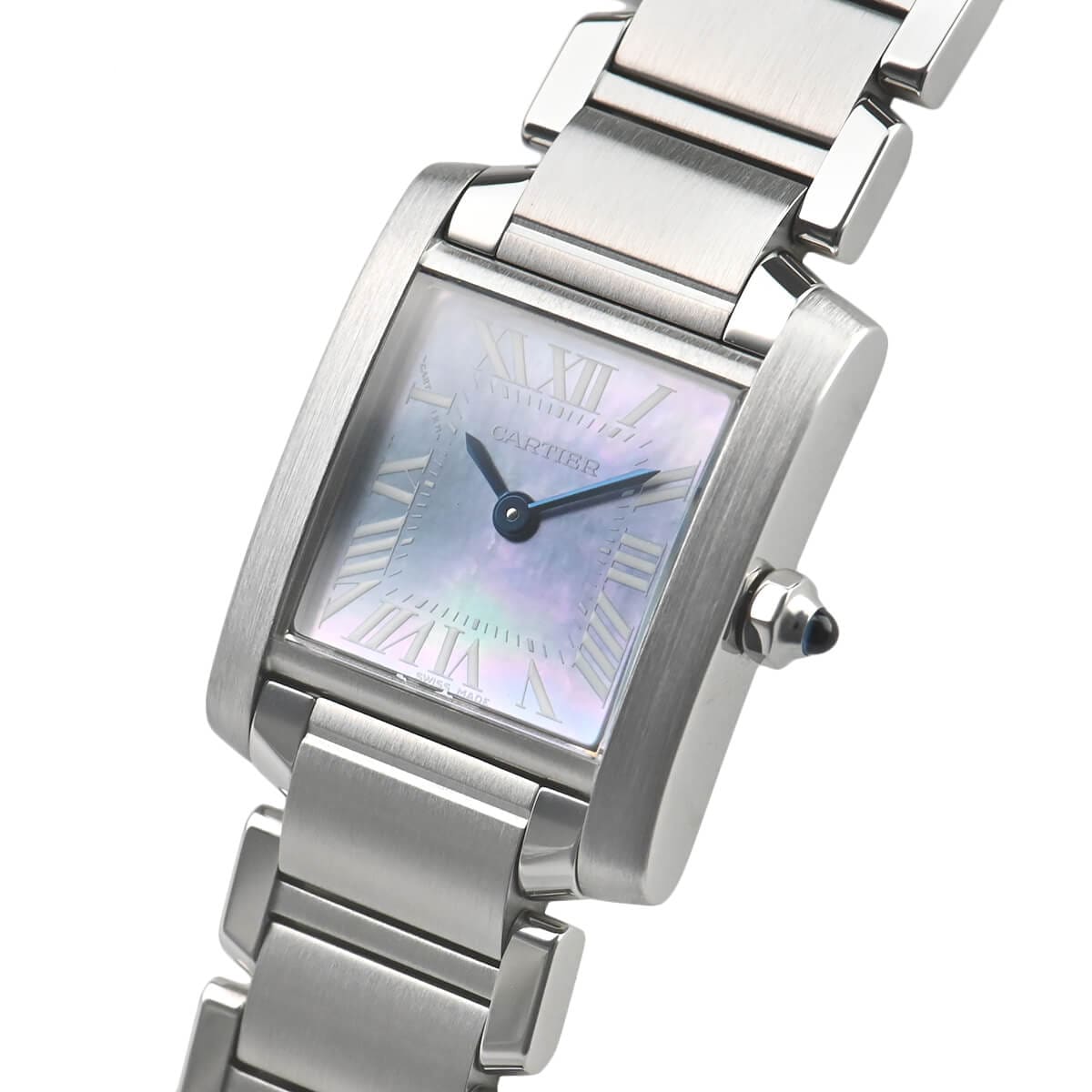 カルティエの定番モデルとして揺るぎない人気を誇る「タンクフランセーズ」。こちらは2008年より販売された、ブルーシェルダイヤルです。