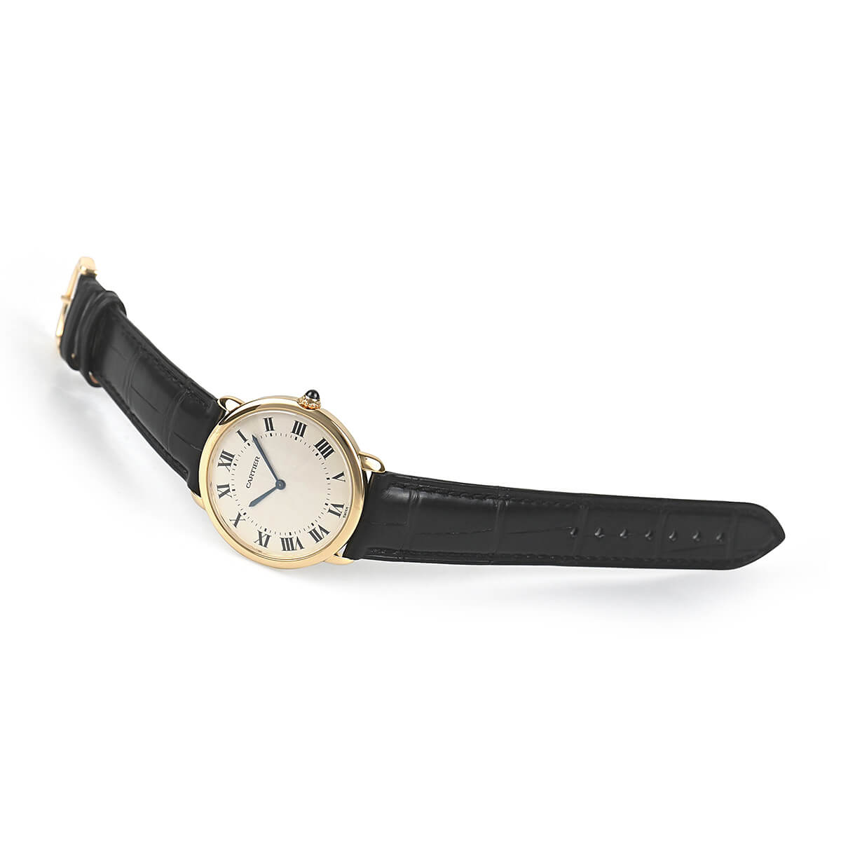 クラシカルなスタイルが好ましい「ロンド ルイ カルティエ」。ローマインデックス、レイルウェイ分目盛り、ブルースチール製アップルハンドなど、「ロンド ルイ カルティエ」はどこを見てもカルティエらしい雰囲気の時計です。