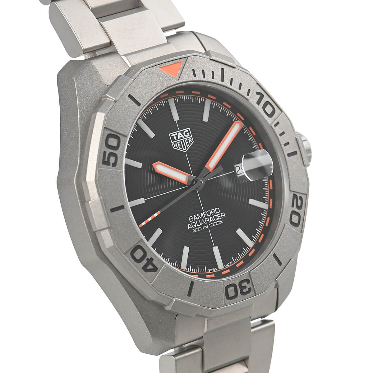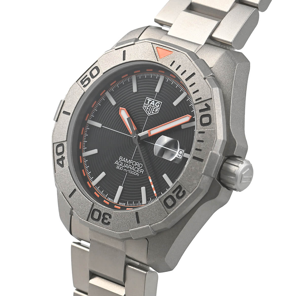 LVMHグループの公式カスタムメーカー「BANFORD」のウォッチ部門とタグ・ホイヤーがコラボレートして誕生した【アクアレーサー バンフォード リミテッドエディション】。ケースとブレスレットの素材にはサンドブラスト加工が施されたグレード2チタンを採用。