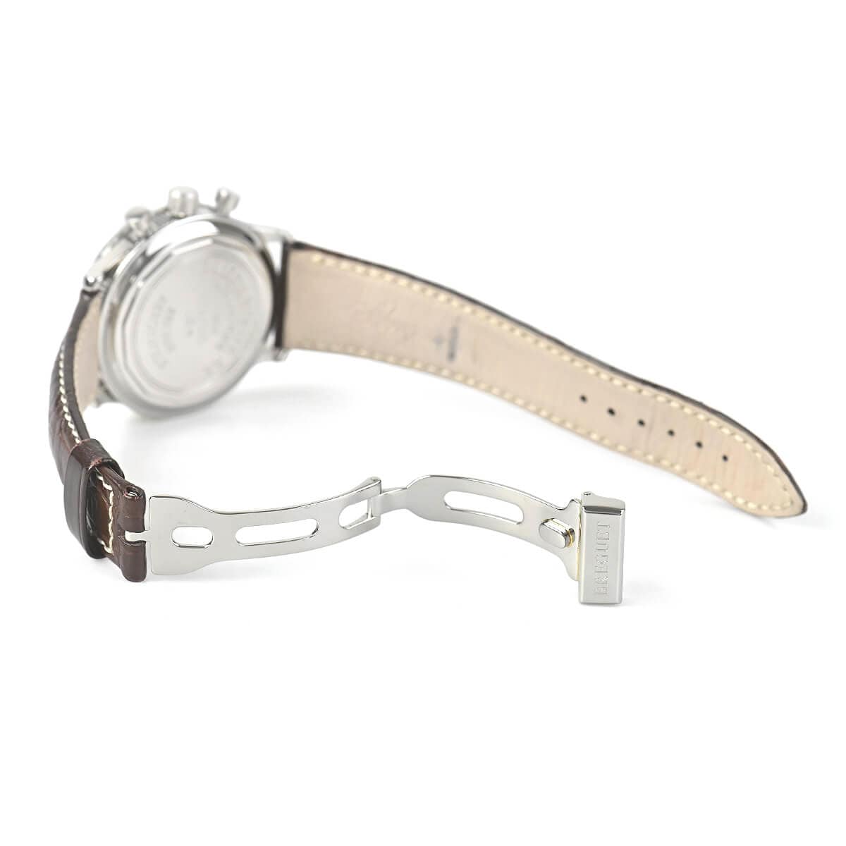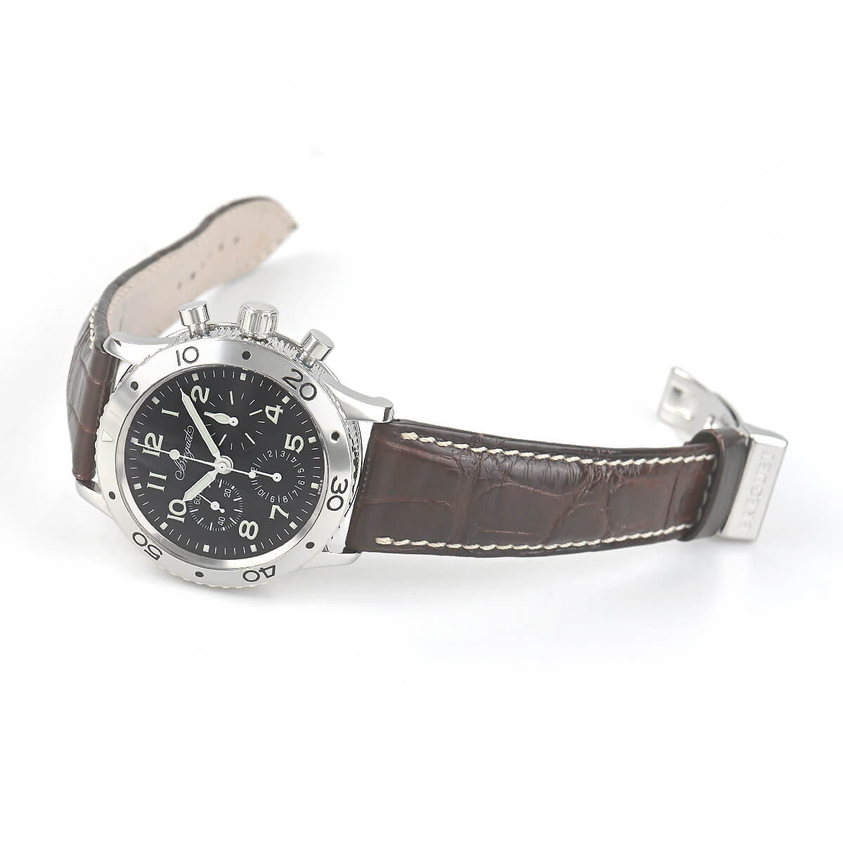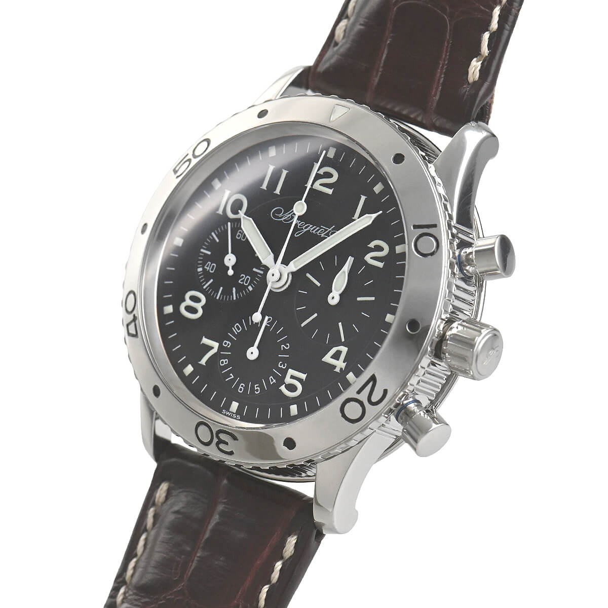 ブレゲの人気モデル「アエロナバル」。オリジナルはフランス軍に納入されたパイロットウォッチですが、ブレゲ独自のコインエッジなどから上手く高級感も演出しています。