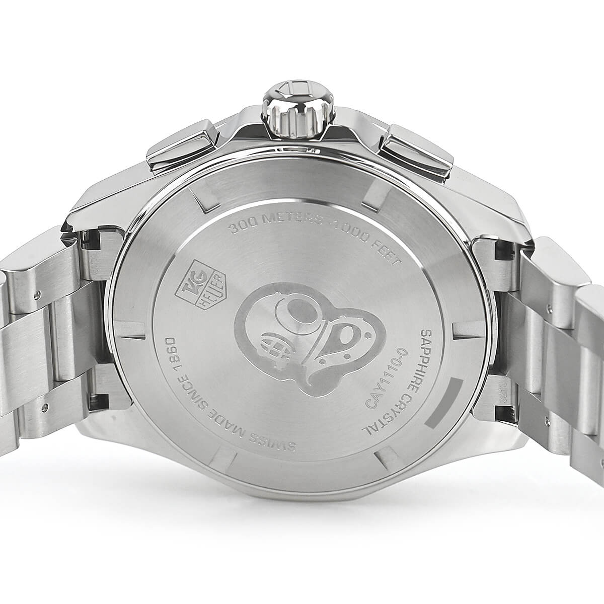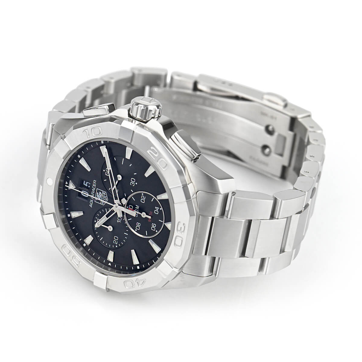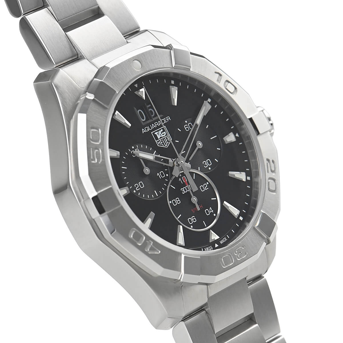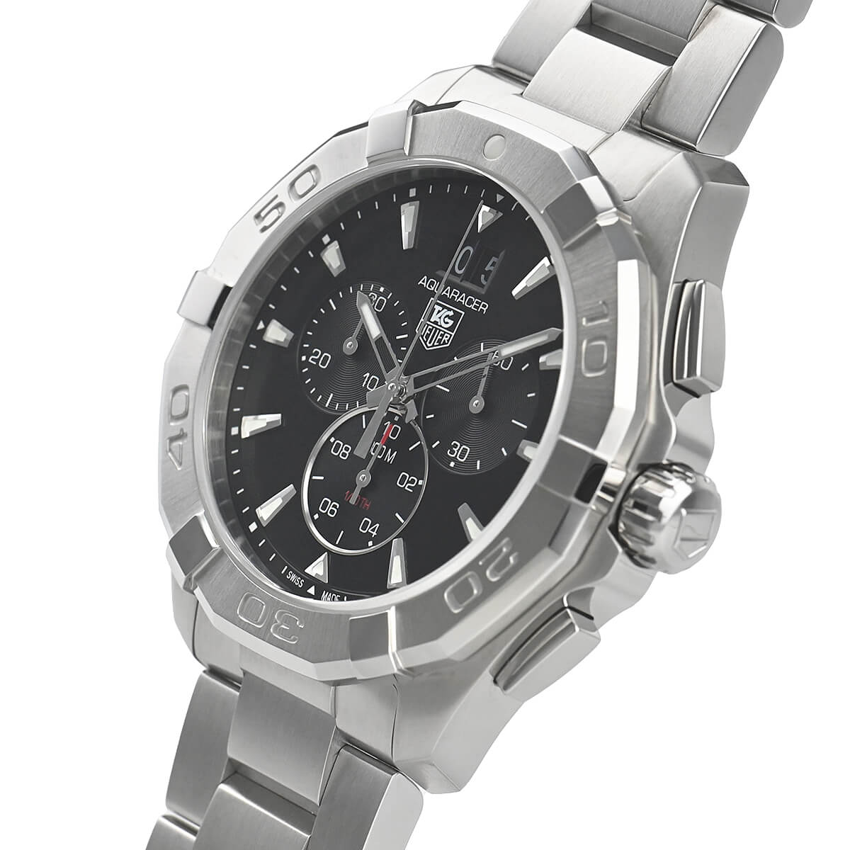 抜群のコストパフォーマンスの「アクアレーサークロノグラフ」。クォーツクロノグラフムーブメントを採用し、6時位置には1/10秒計、12時位置には読みやすいビッグデイトを搭載。