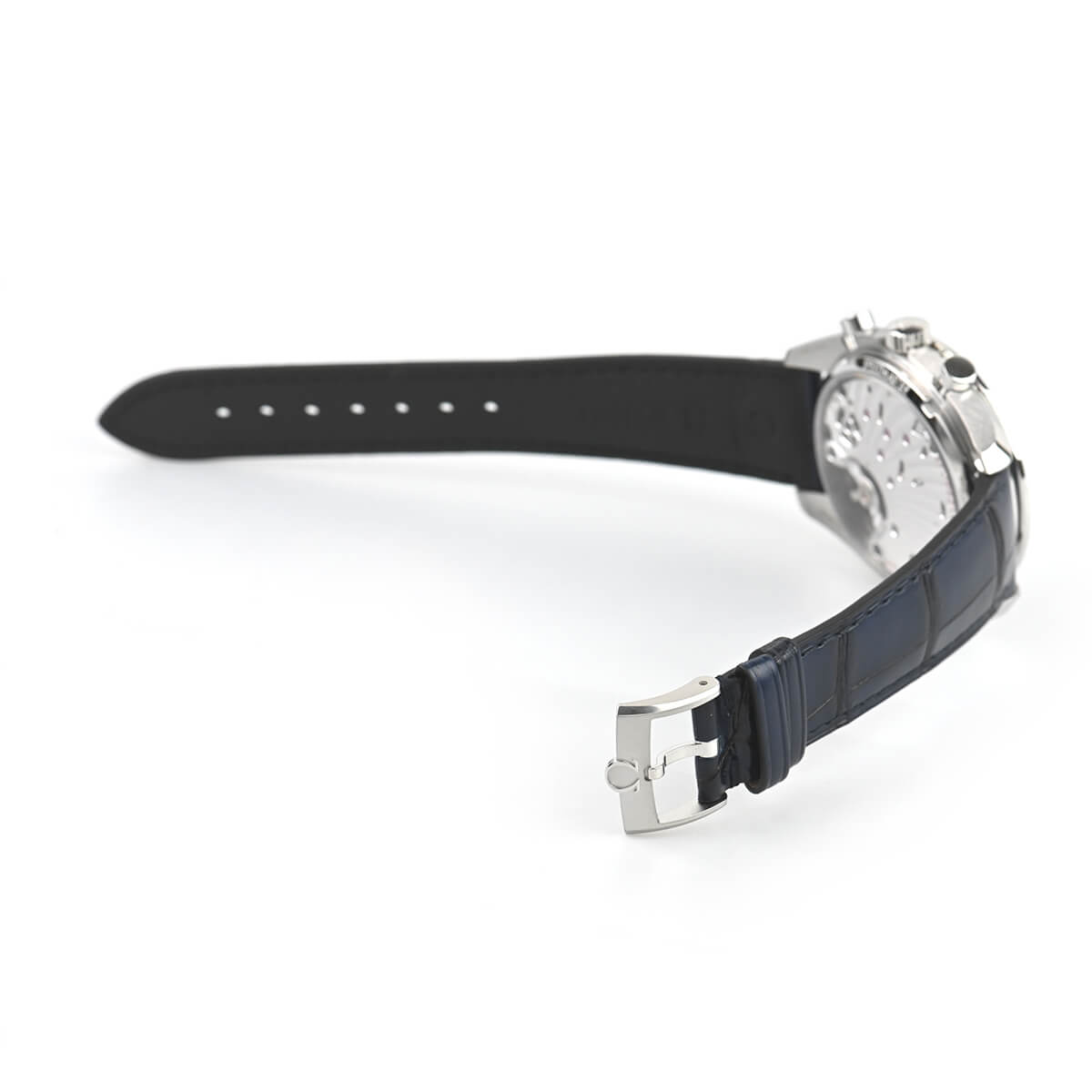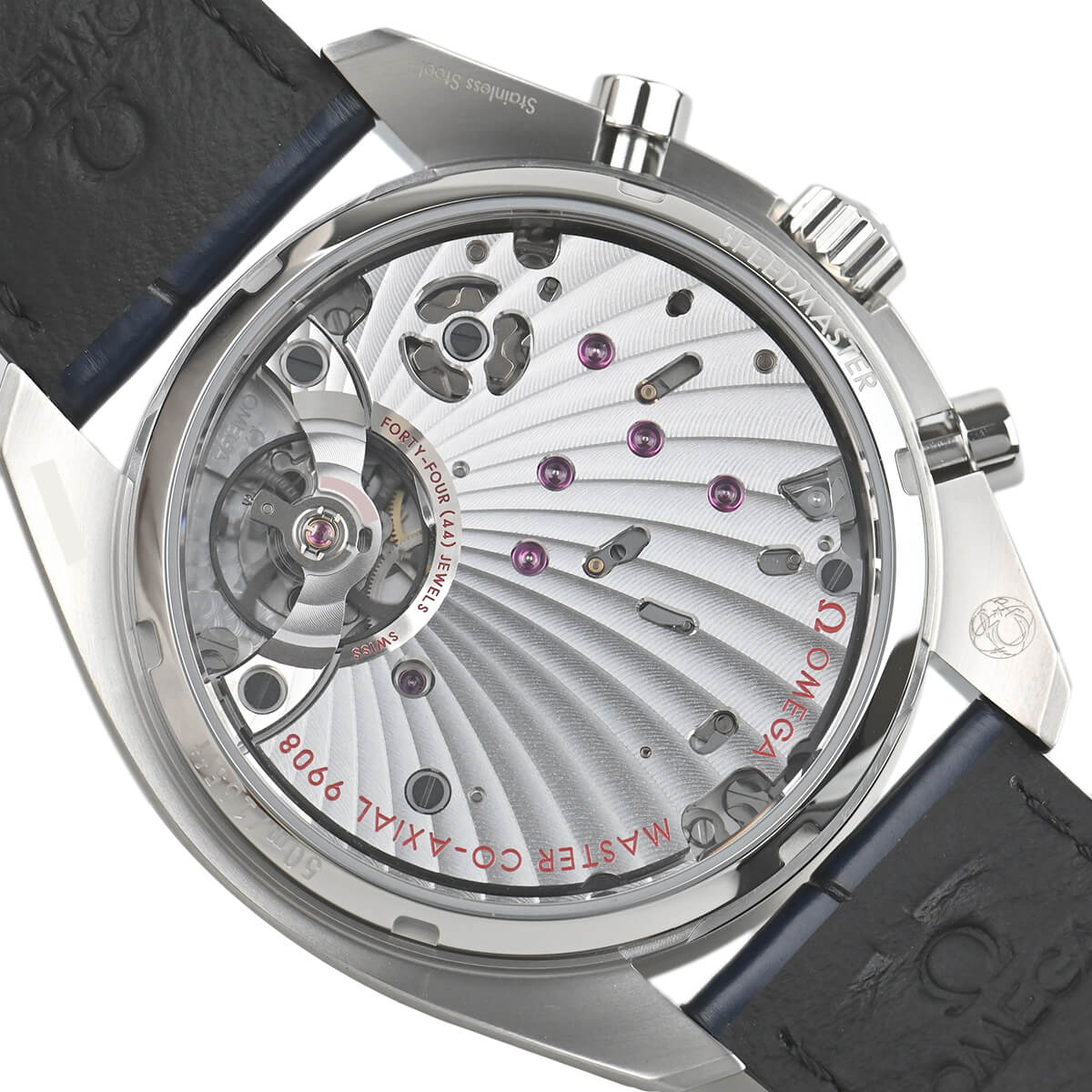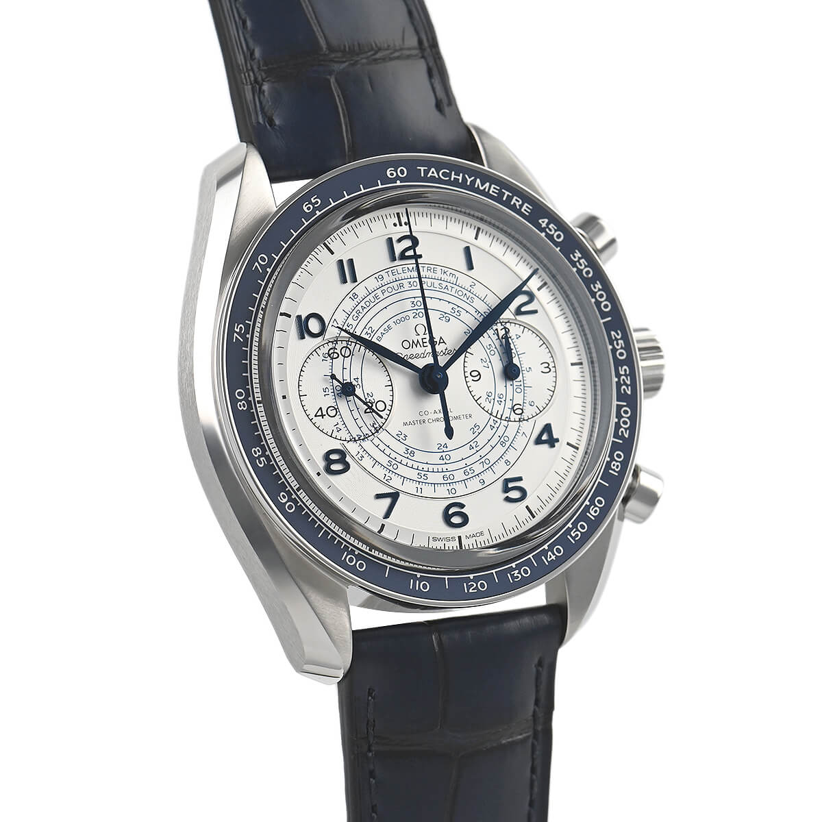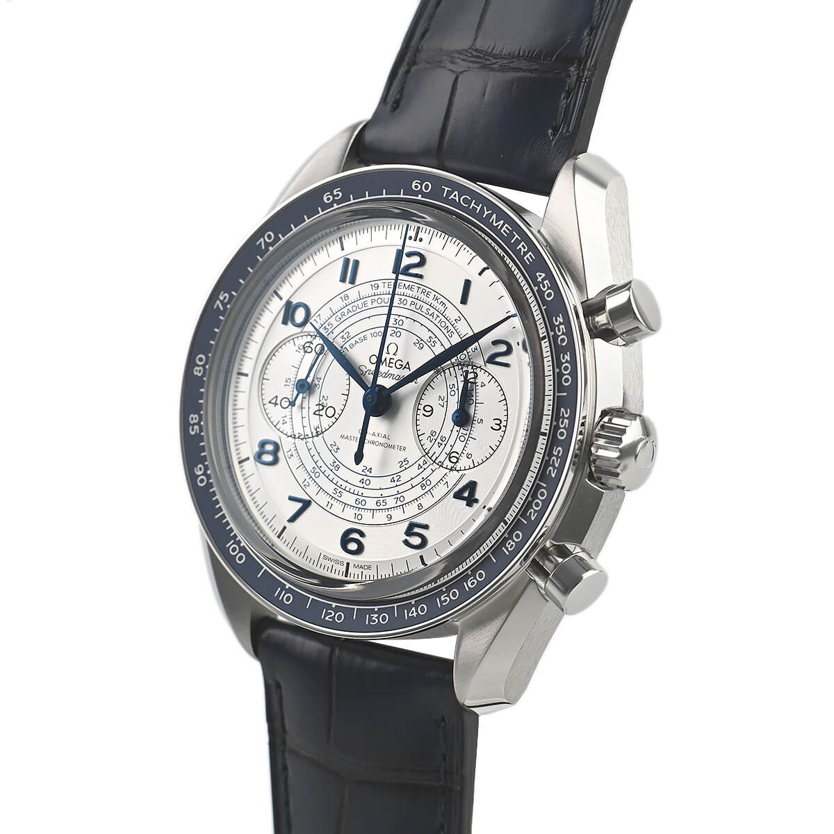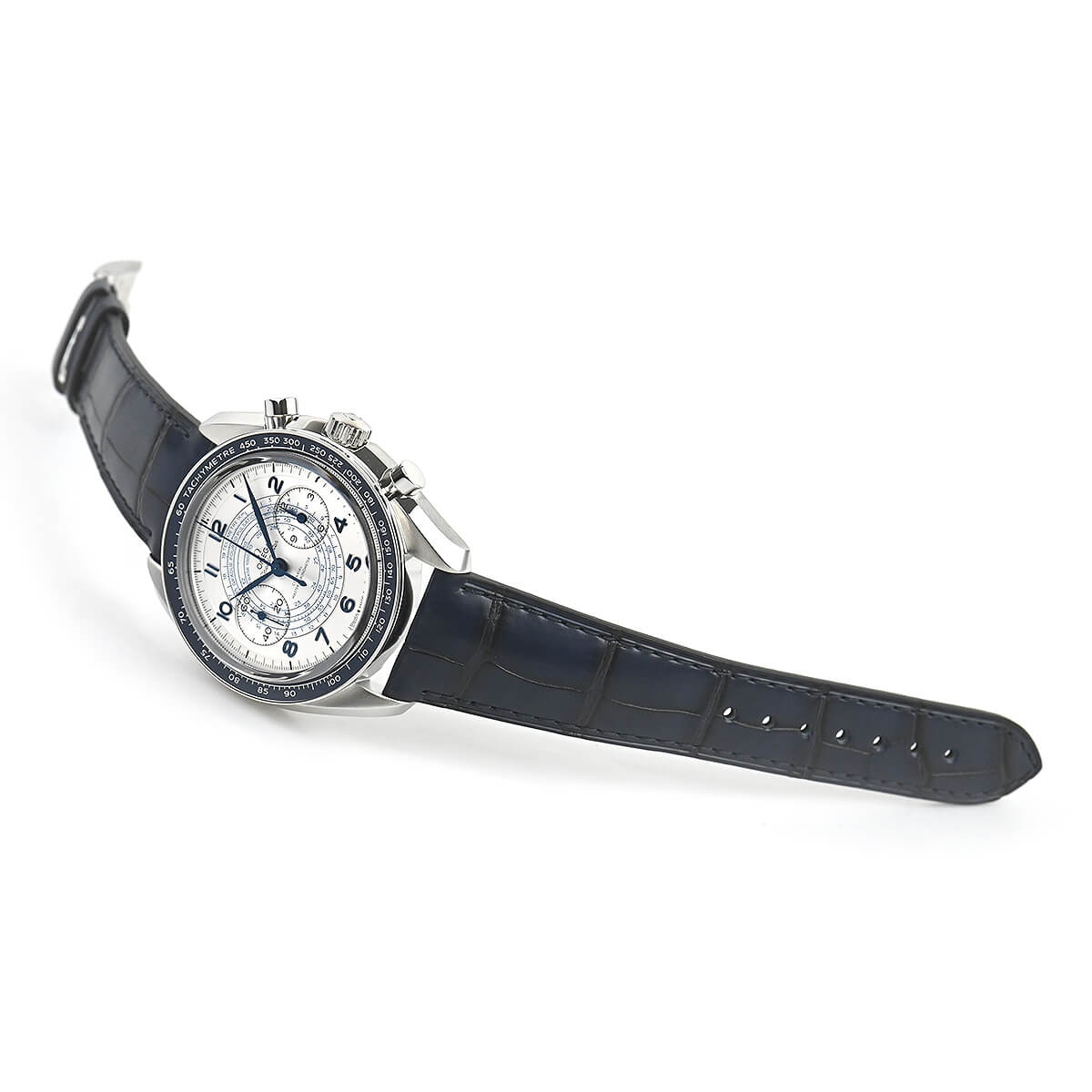 スピードマスターの伝説的なデザインと、1940年代から続くオメガのクロノグラフ ウォッチの歴史から得たインスピレーションを融合した、「クロノスコープ」コレクション。文字盤中央に、タキメーター・パルスメーター・テレメーターが1940年代のスネイルデザインを用いてプリントされ、今までのスピードマスターにはない独特なクラシカルな雰囲気を作り出しています。