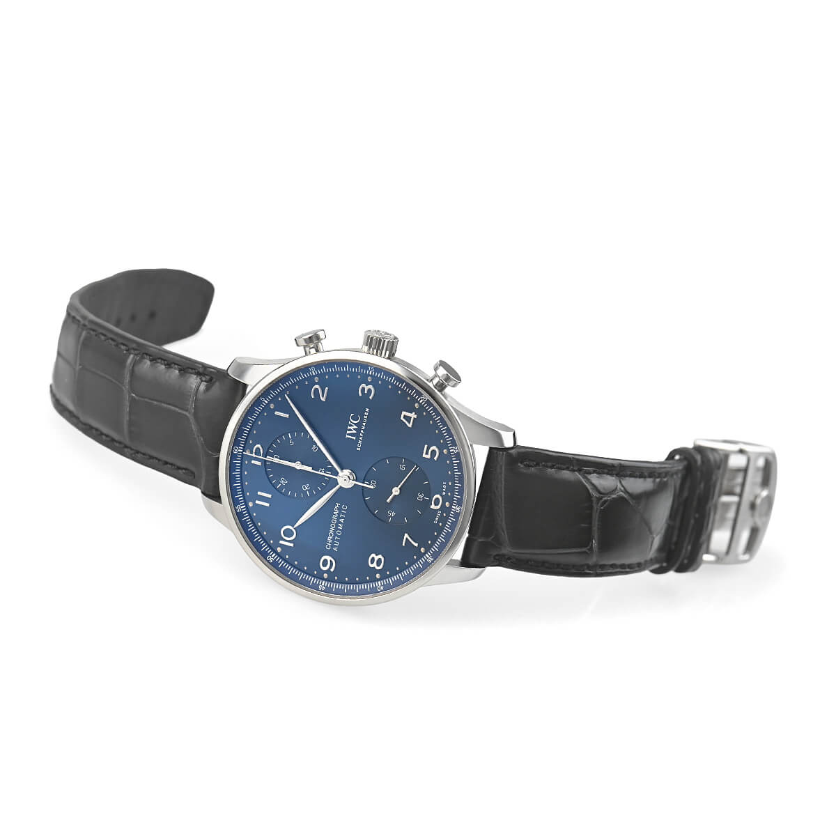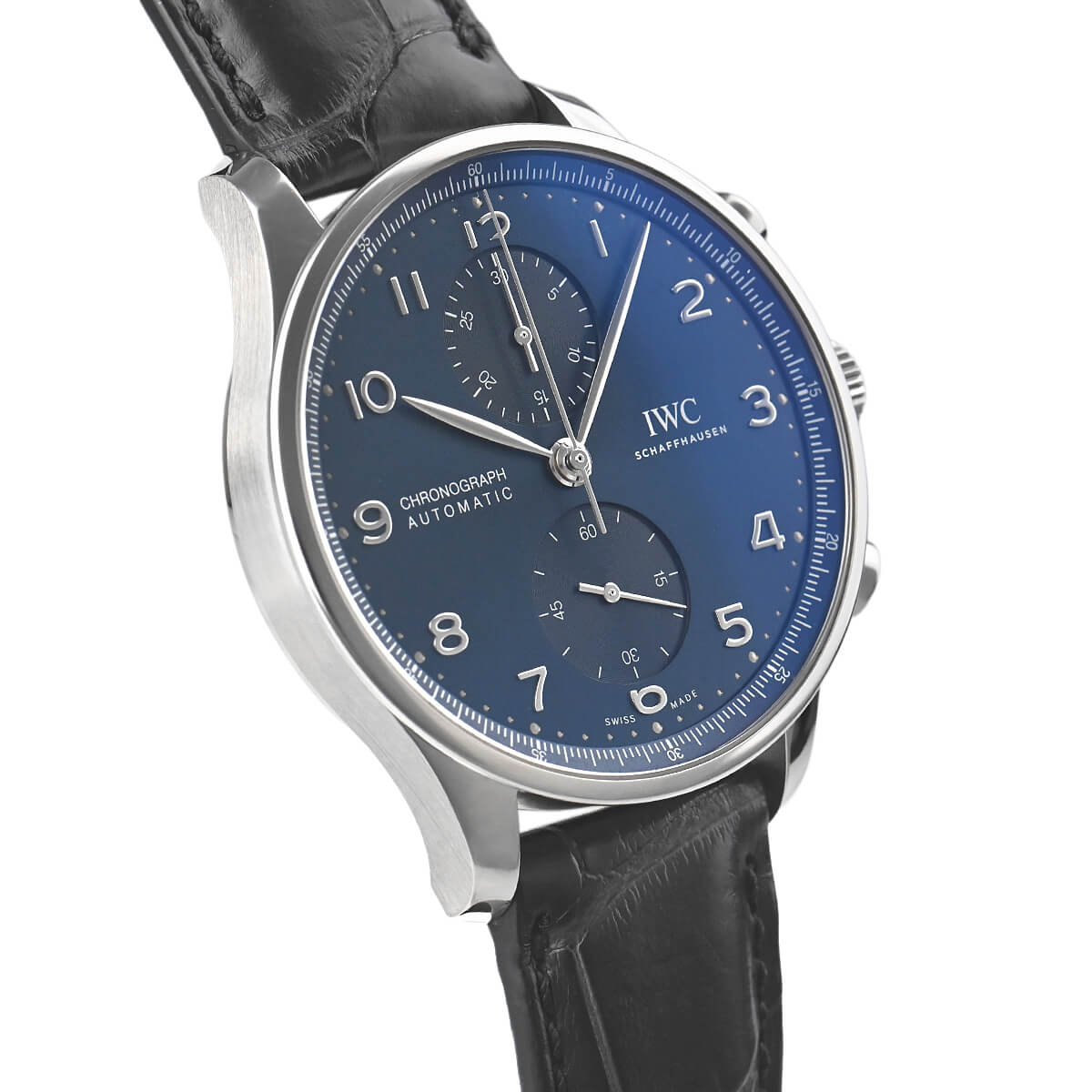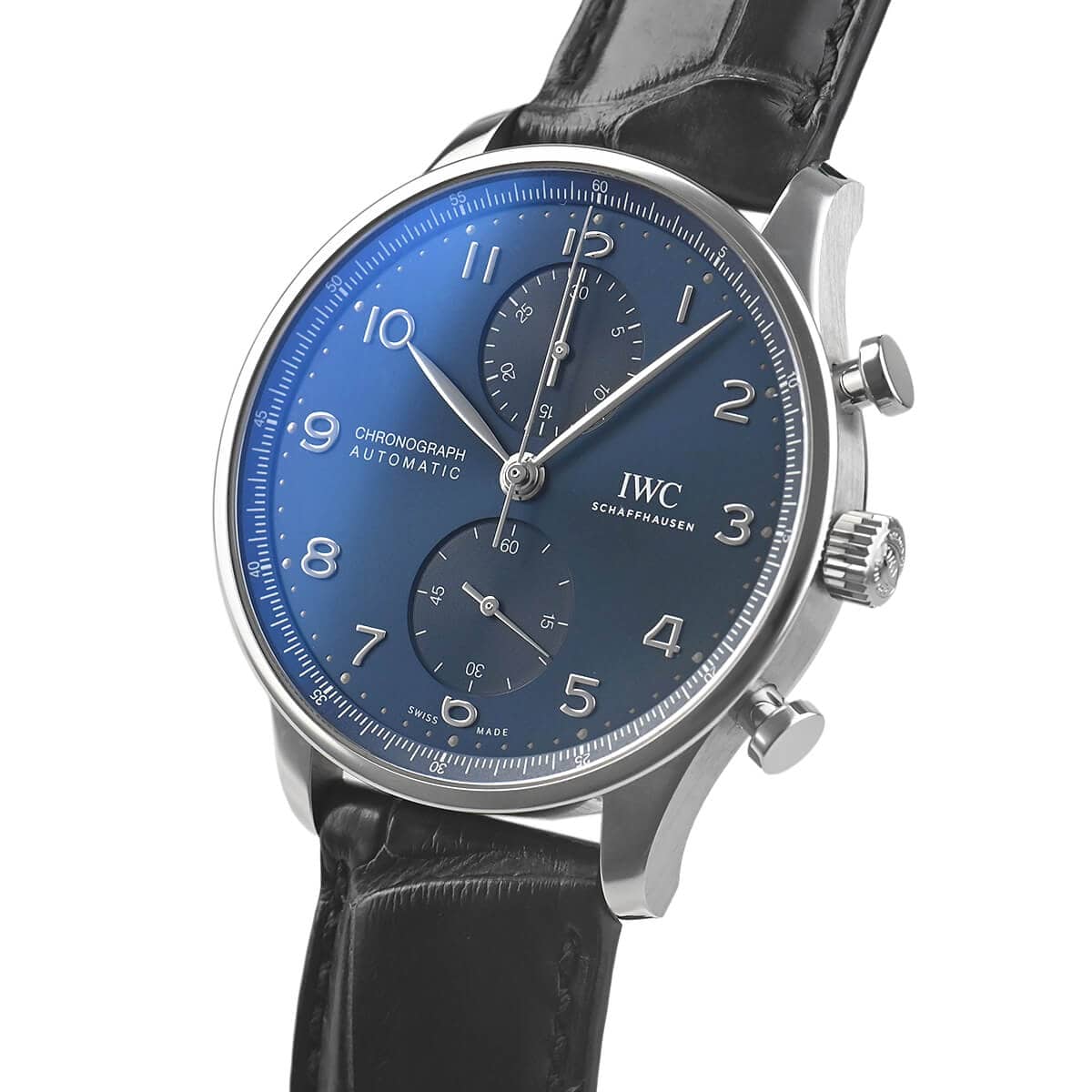 ポルトガル人時計商の依頼により1939年に誕生した「ポルトギーゼ」。「ポルトギーゼ クロノグラフ」は、クラシックな基本デザインはそのままに、細部は現代的にアップグレードされたいつの時代でも使いやすいモデルです。