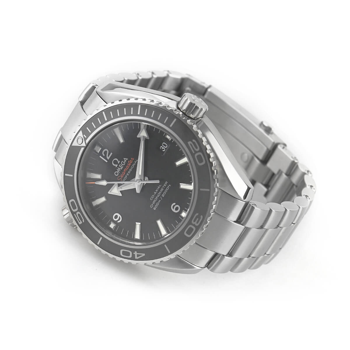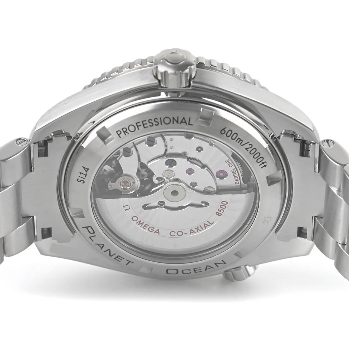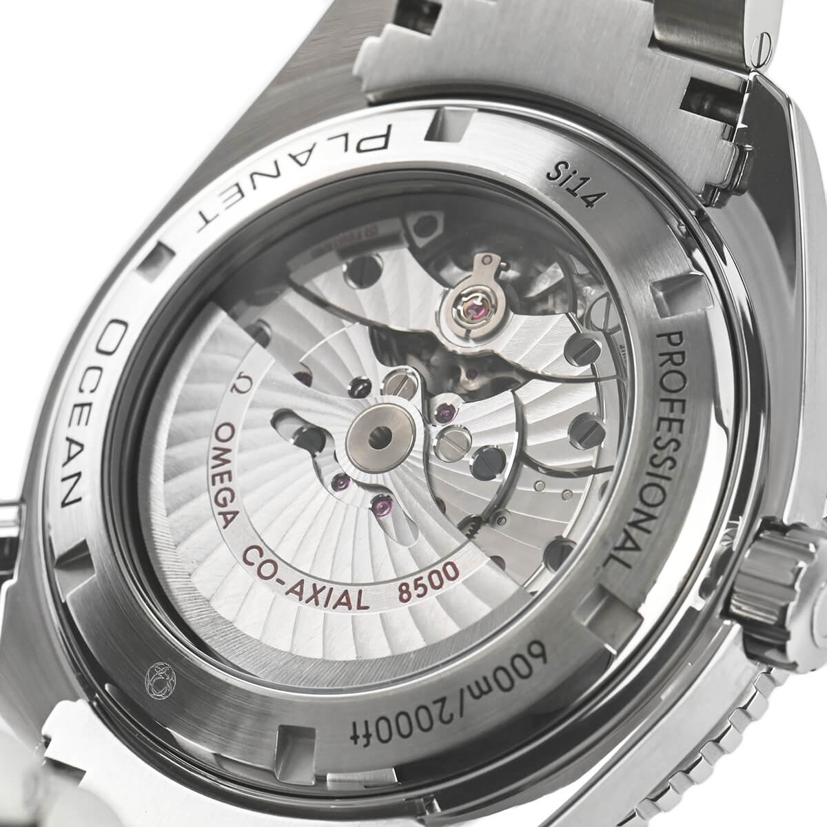 自社製ムーブメントCal.8500が搭載された「シーマスタープラネットオーシャン」。外見こそ今までのモデルと似ていますが、時計の心臓部であるヒゲゼンマイにシリコンを採用し、長時間のパワーリザーブに対応するためにツインバレルを搭載するなど、最新テクノロジーが込められた新世代のシーマスターです。