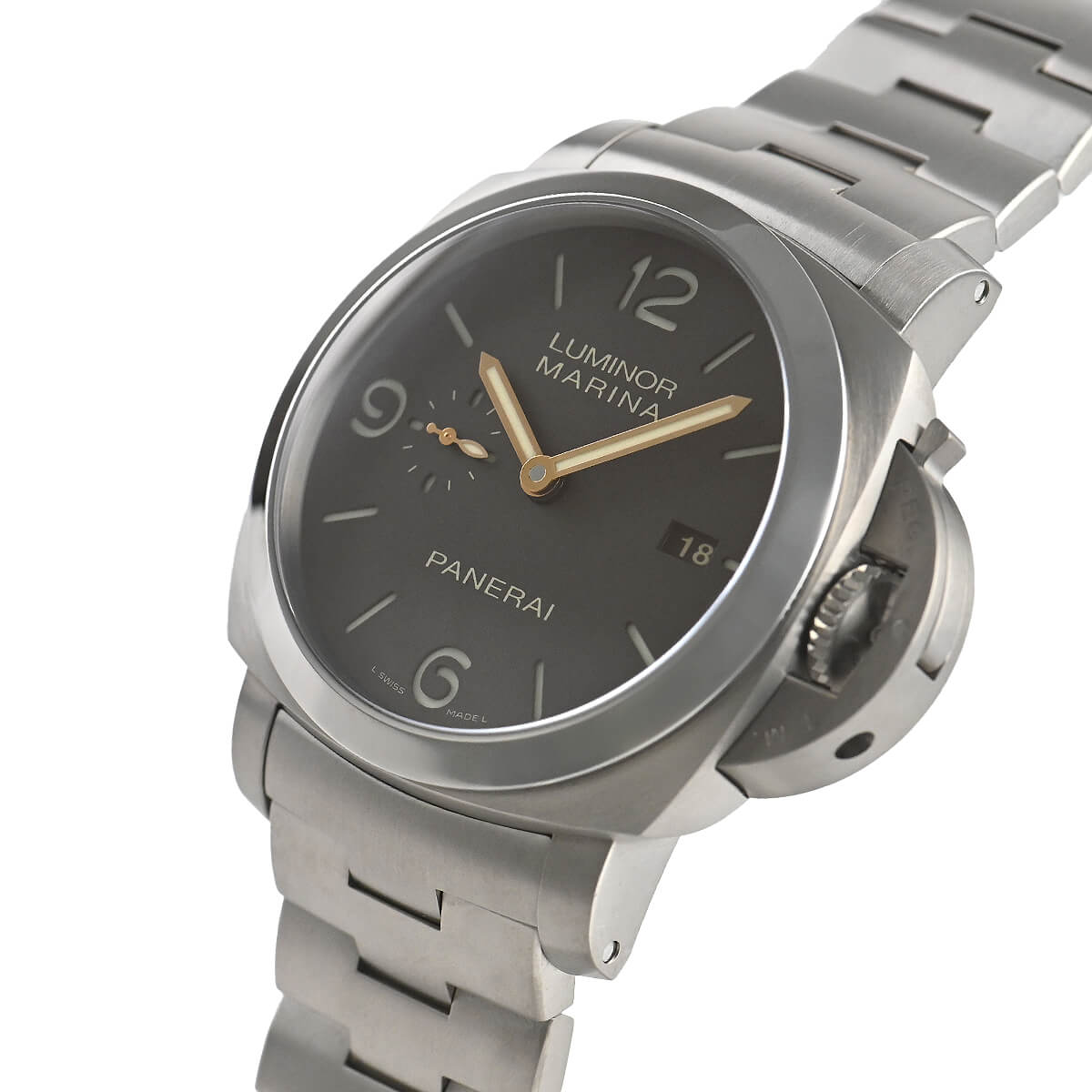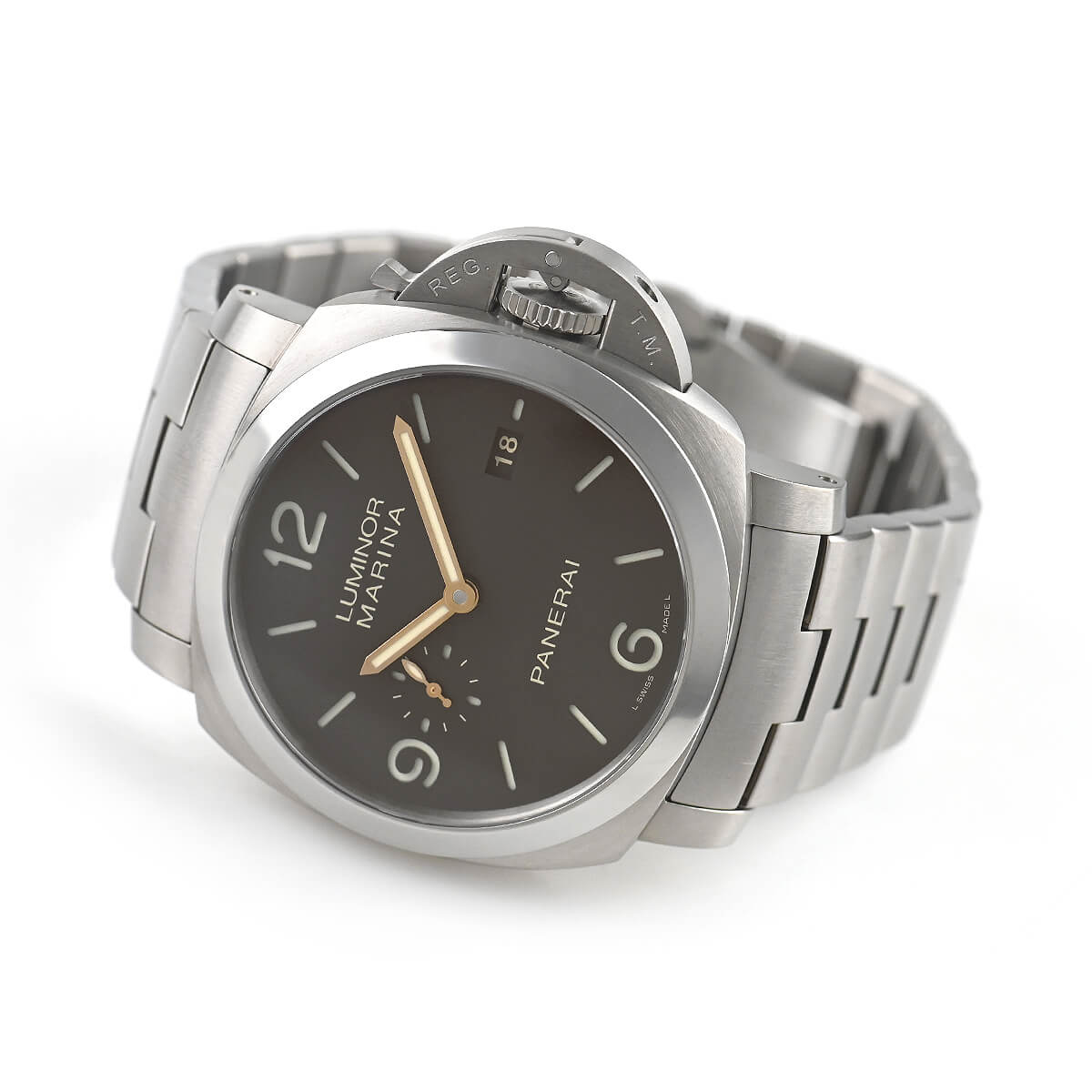 R番“2015年製”【PAM00352】ルミノール1950マリーナ3デイズが入荷致しました。ケースとブレスレットはチタンで成型されており、ステンレスモデルに比べると比較的軽量でブラウンの文字盤も良くマッチしております。