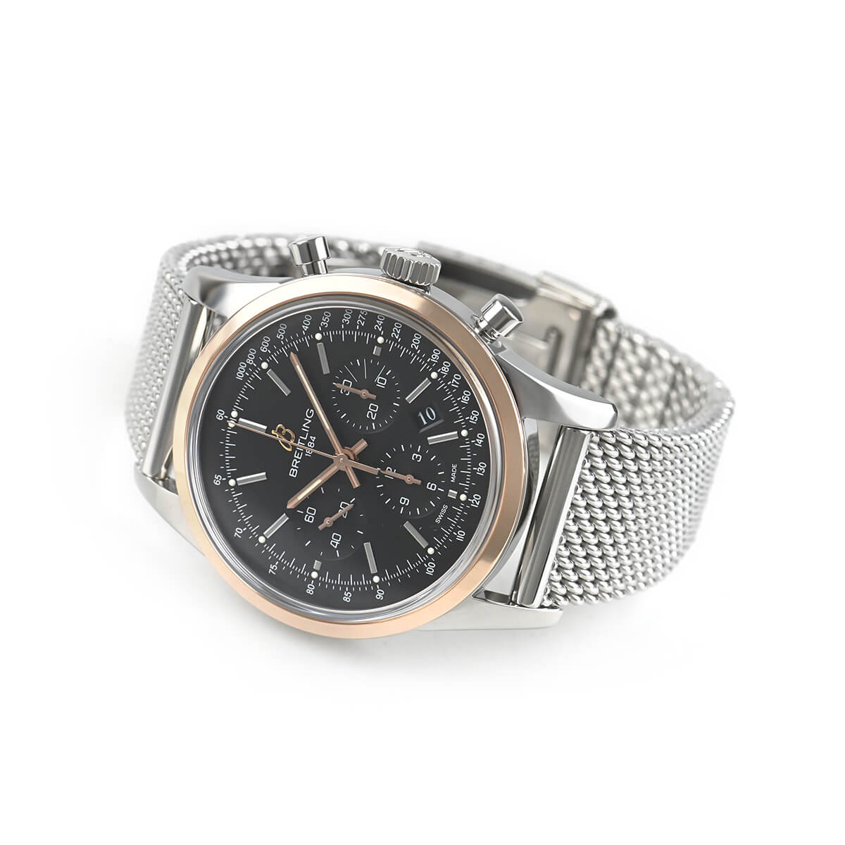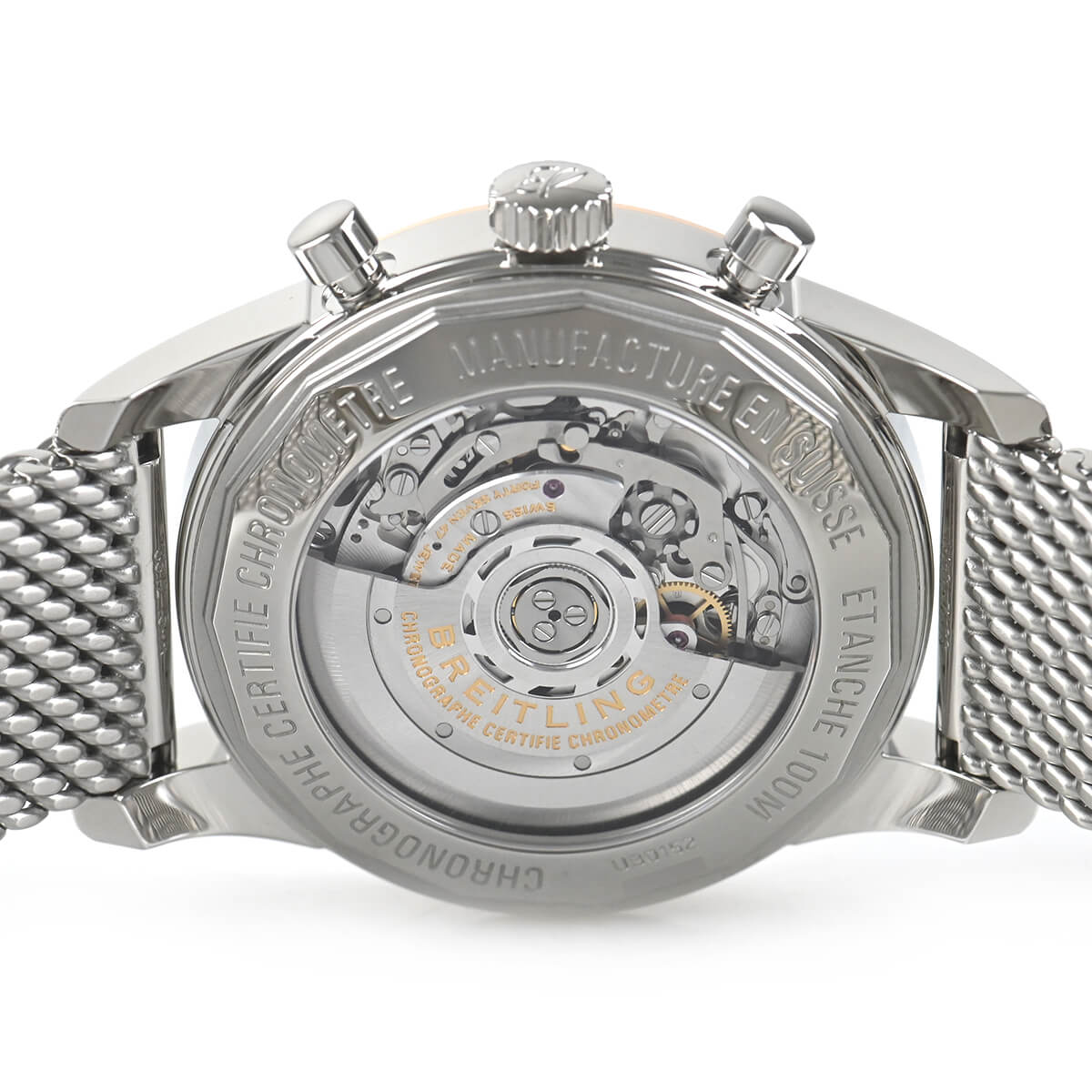 ブライトリング初の完全自社開発キャリバー「キャリバー01」を搭載した「トランスオーシャン クロノグラフ」。1958年に誕生した初代トランスオーシャンクロノをオマージュしたデザインは、機械式時計の黄金時代である、1950〜60年代のクラシカルなクロノグラフの美しさを再現しています。