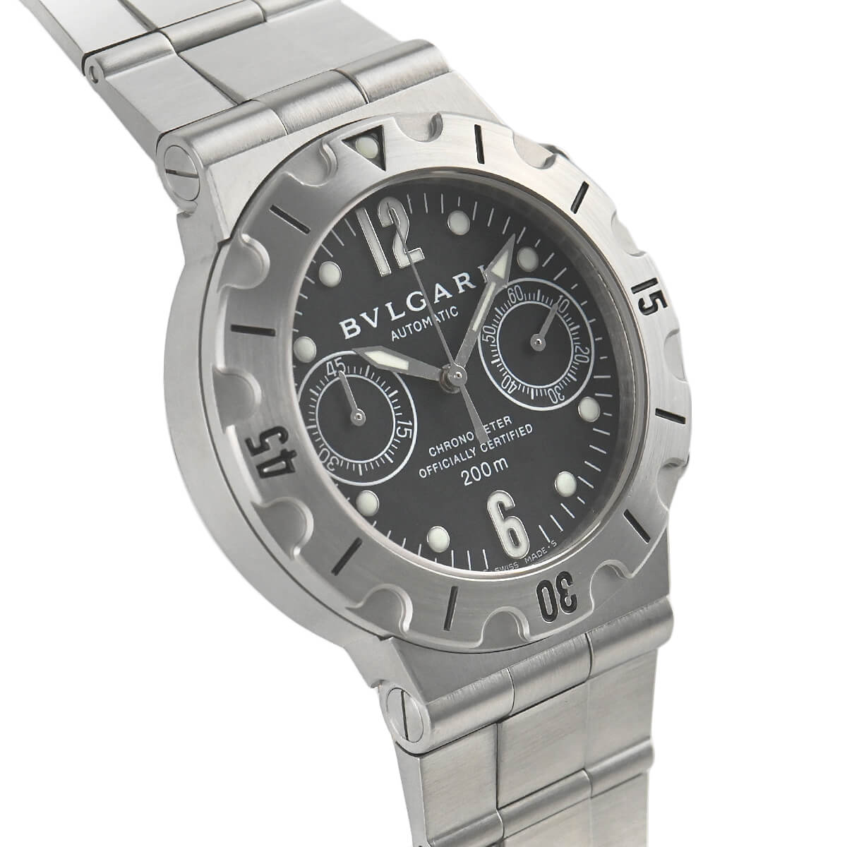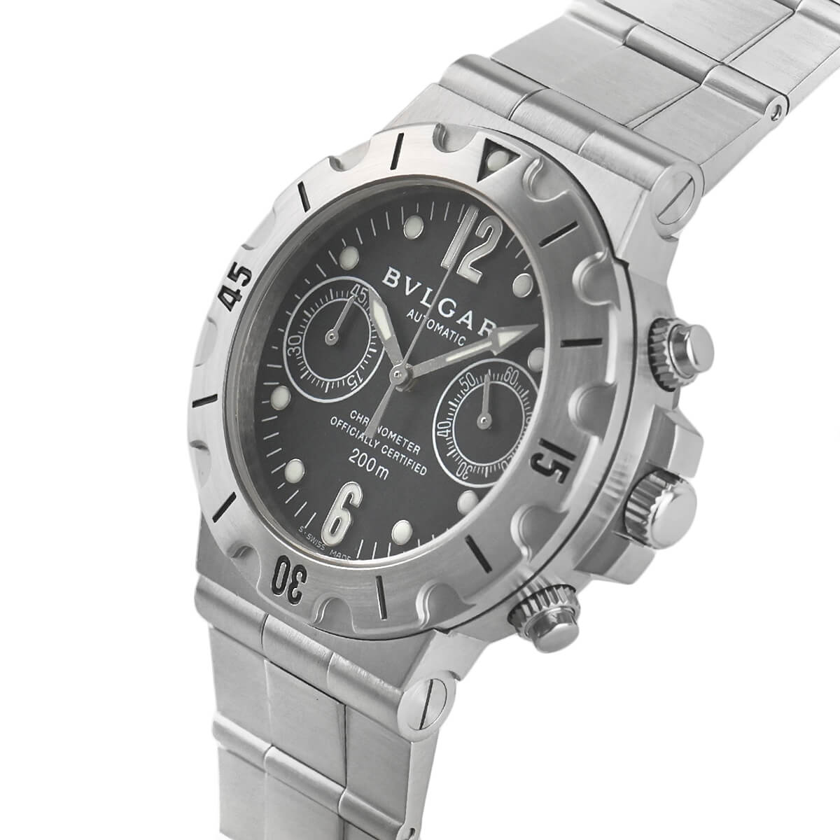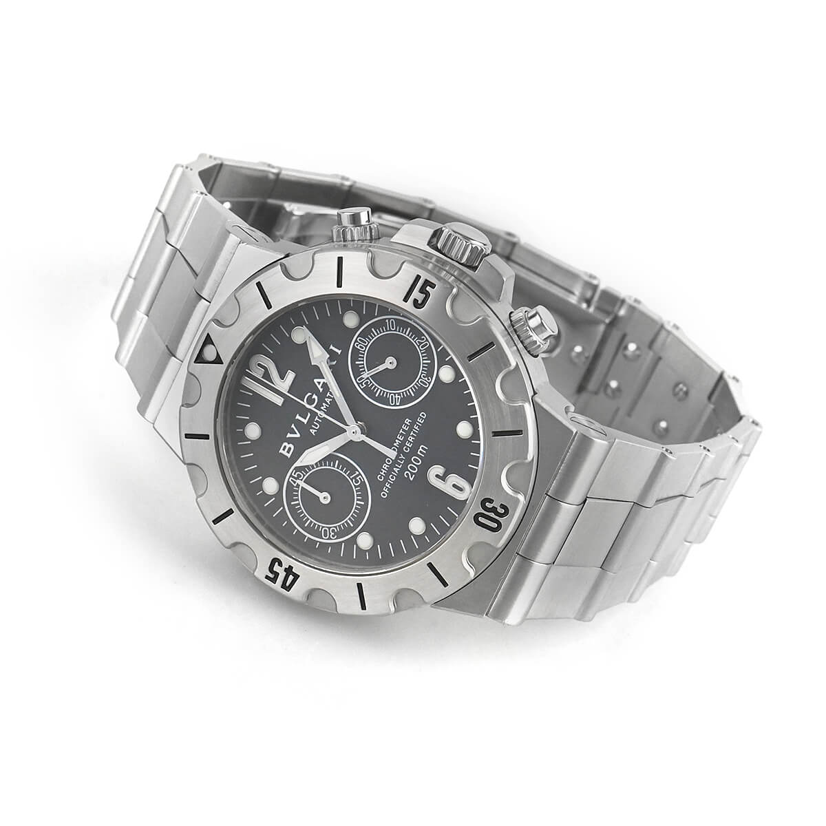 ブルガリを代表するスポーツウォッチである「スクーバクロノグラフ」。200m防水機能の本格的なダイバーズウォッチながら、ブルガリらしいエレガントなデザインが特徴です。
