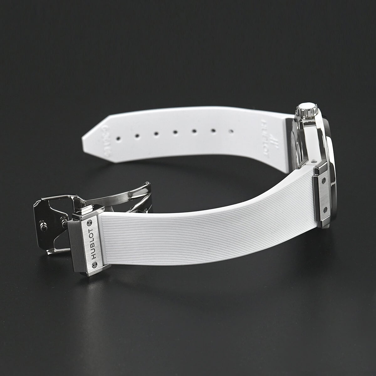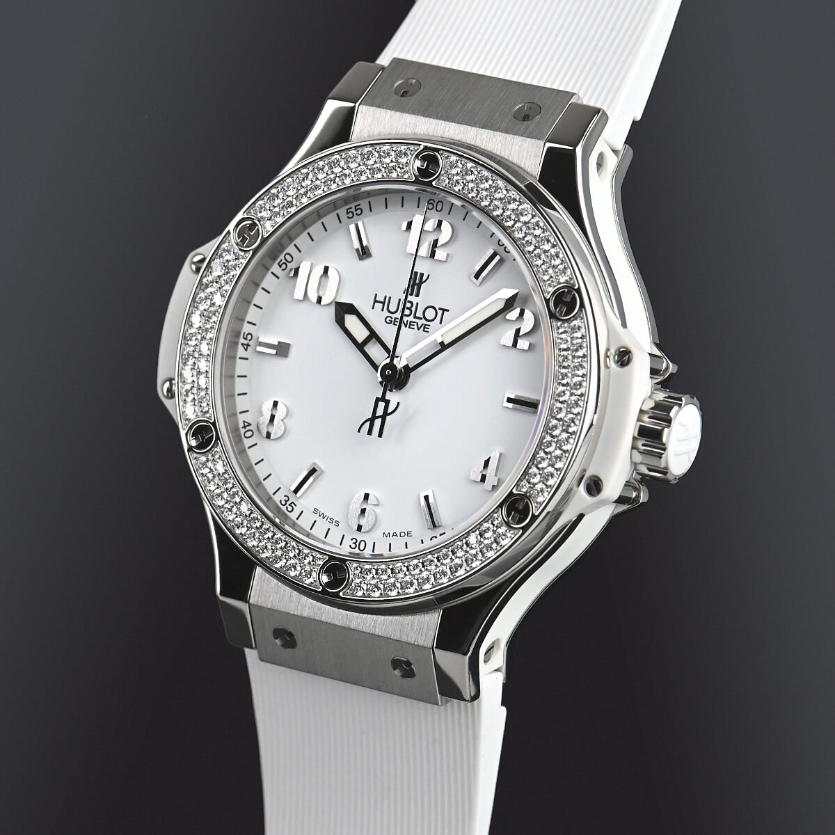 ユニセックスなサイズ感のビッグバン。ディテールはそのままにサイズダウンしていますので、独特なウブロの世界観は損なわれておらず、非常に格好良くまとまってます。