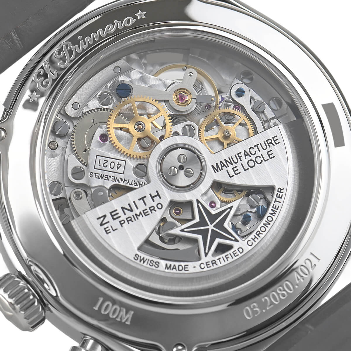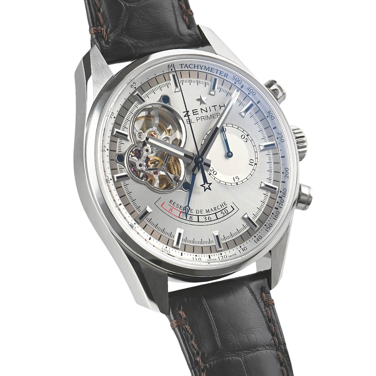 ゼニスの象徴のスターがクロノ針にデザインされているのが面白いですね。