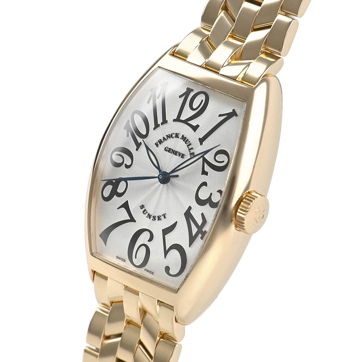 美しい曲線を描くトノウカーベックスに、ブラック・アラビアインデックスが特徴の“サンセットダイヤル”を合わせた「5850SCRS」。ブルースチールの針と合わされ涼しげな印象です。