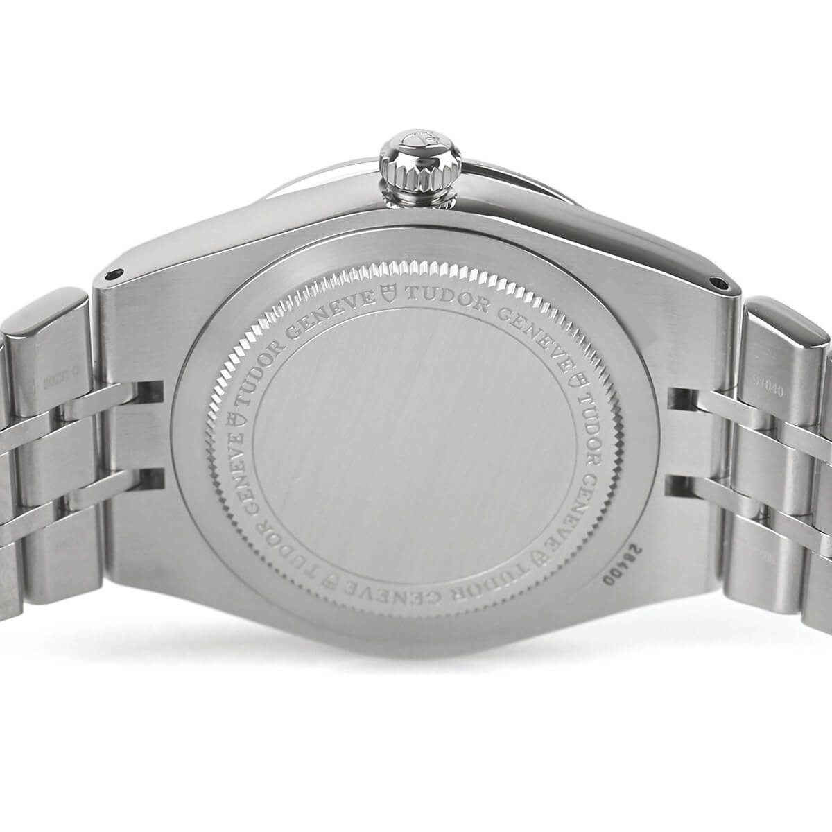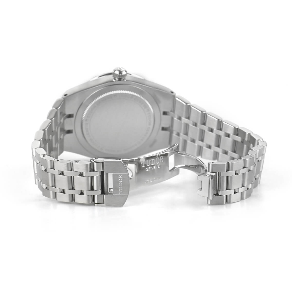 サテンとポリッシュが交互になった5列のブレスレットは、ケースと直接つながったチューダーとしては珍しいタイプ。