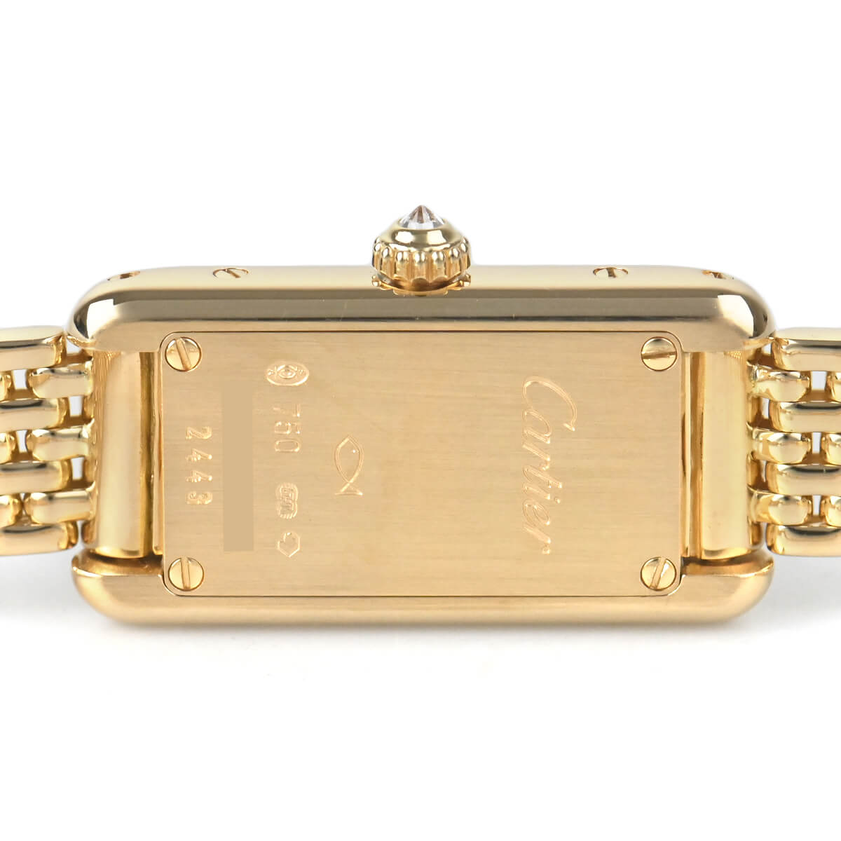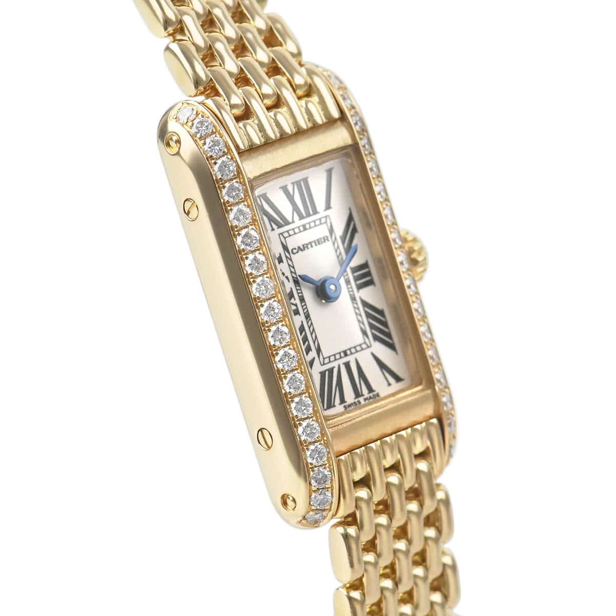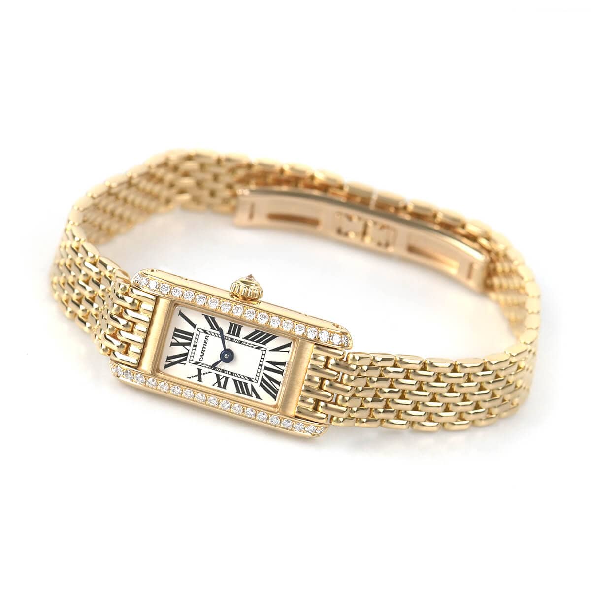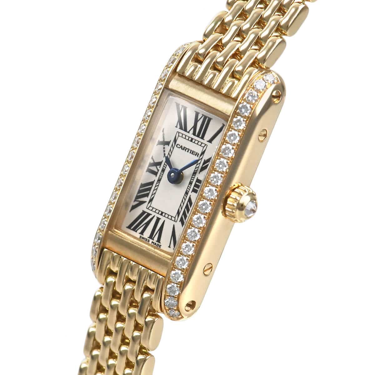 数あるタンクのシリーズの中でもひときわ小さい「タンクアロンジェ」。こちらはケースサイドにダイヤモンドをセッティングしたモデル。