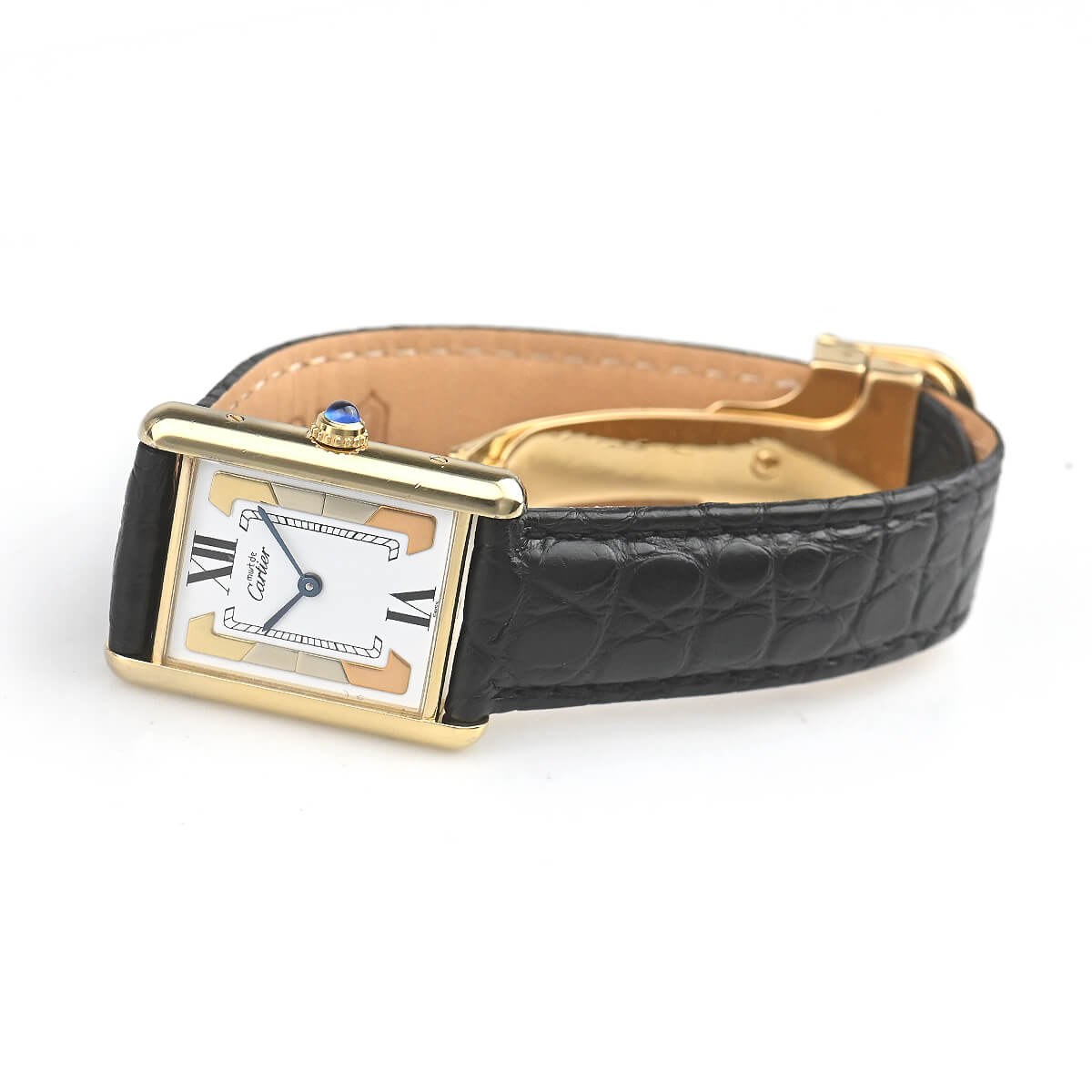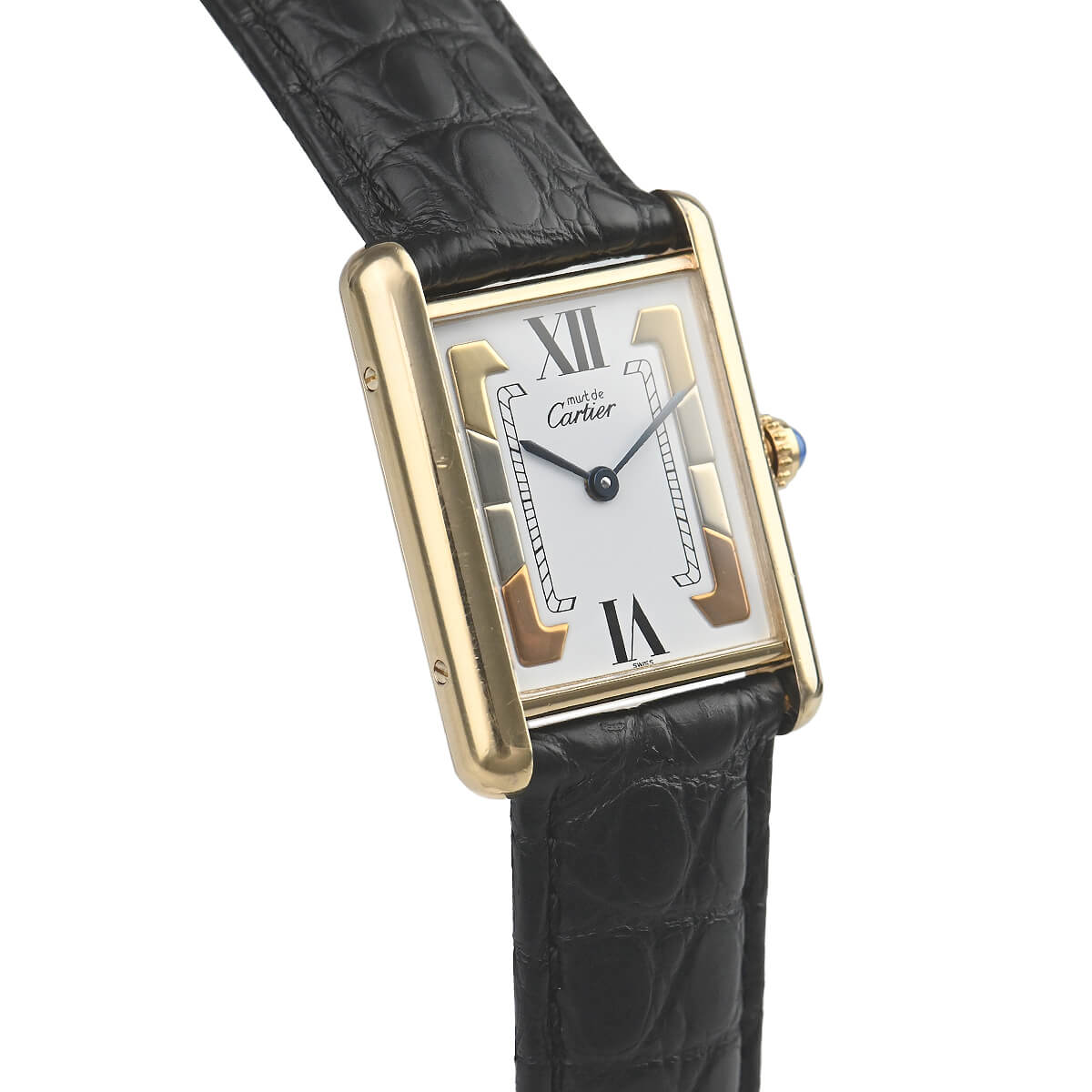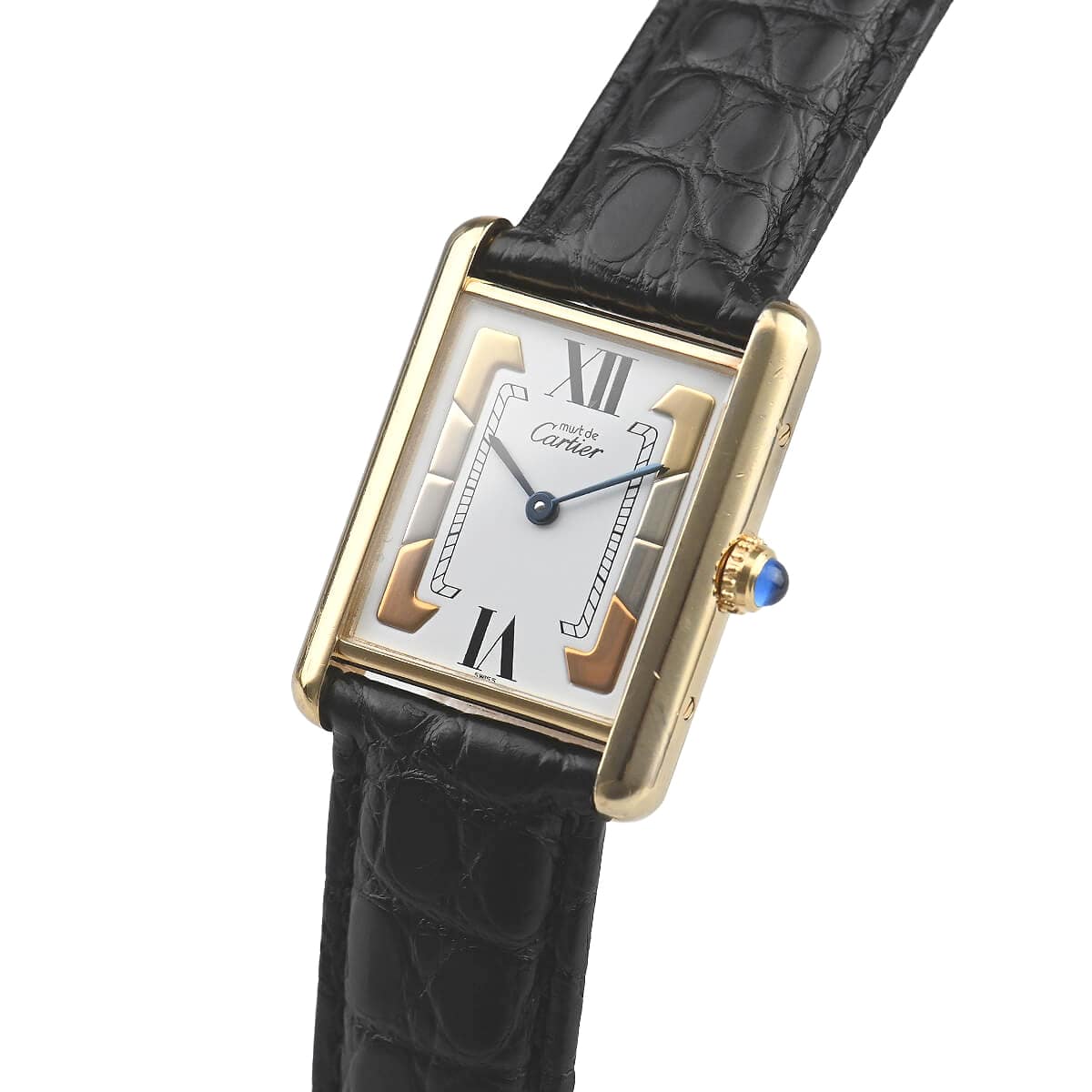 生産終了になった現在、再び人気急上昇中の「マストタンク」が入荷しました。ケースはシルバー素材にイエローゴールドコーティングが施され、落ち着いたクラシカルな印象は現行モデルには醸し出せない魅力があります。