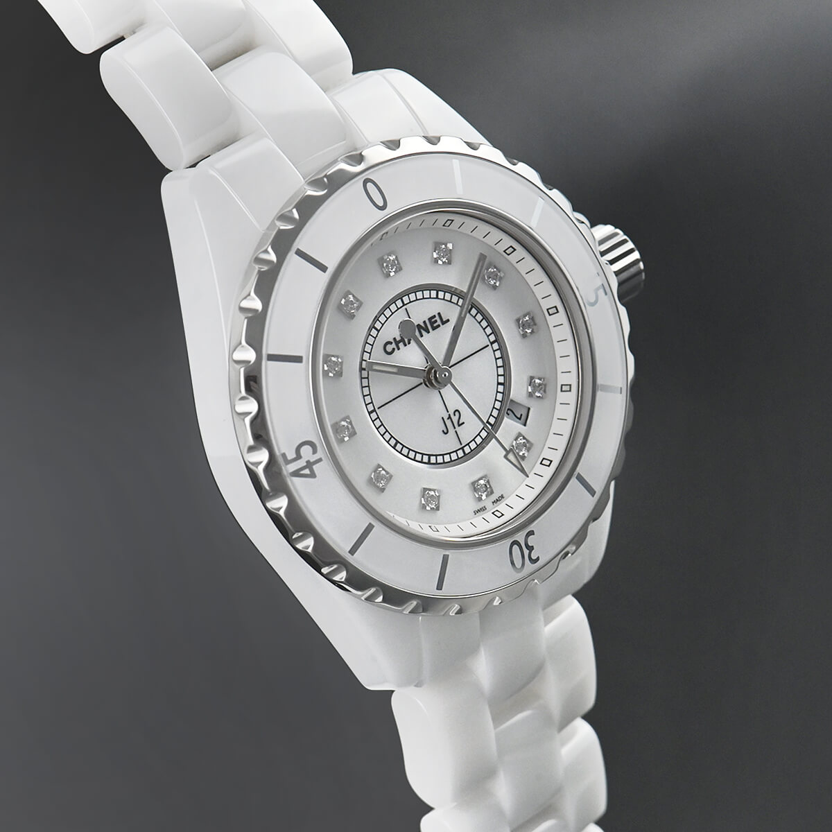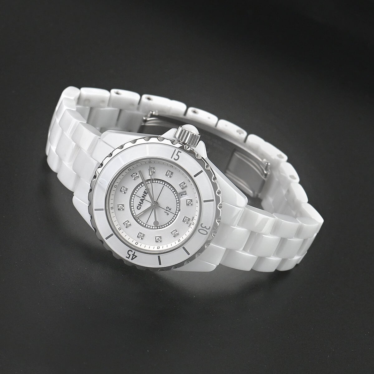 男女問わず、変わらぬ人気の「J12」。こちらの33mmケースの12Pダイヤ文字盤は、シリーズ発表当時からの人気モデルです。