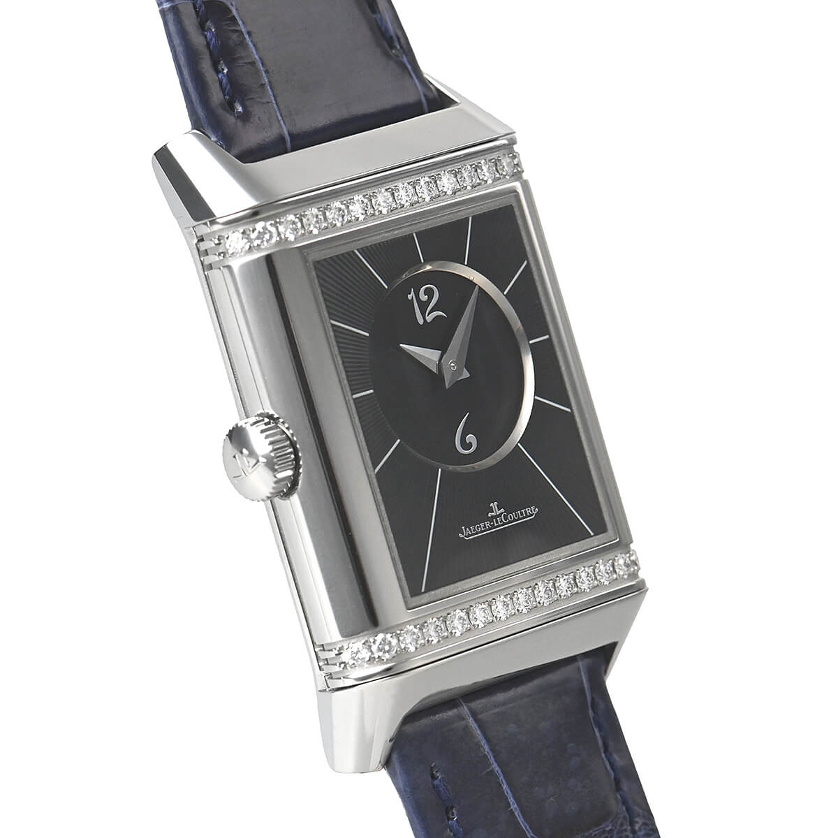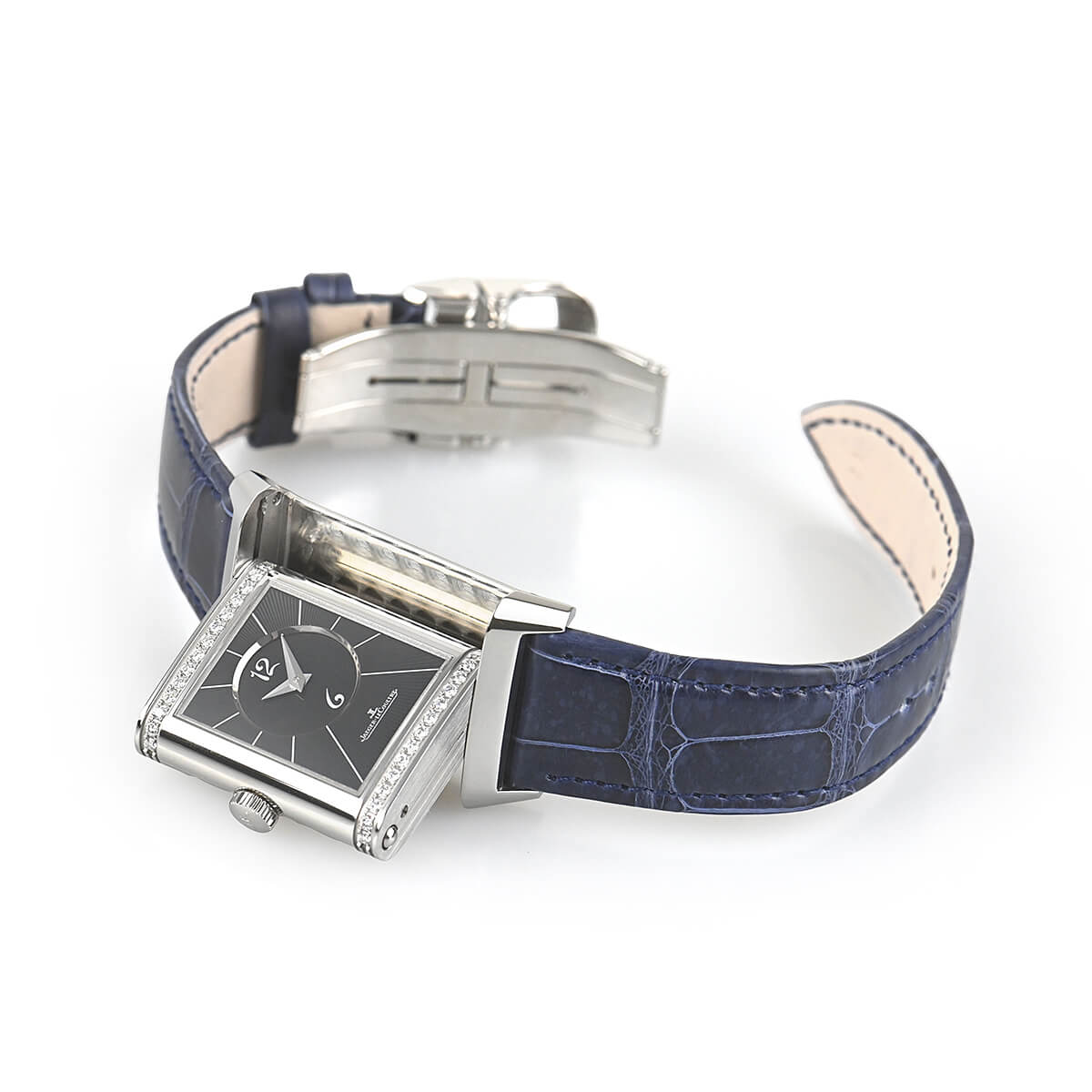 文字盤も表側のクラシックなシルバーダイヤルに対して、裏側にはブラックダイアルを用い、上下にダイヤモンドをセッティングすることで、ドレスウォッチとしての華やかさもお楽しみになれます。