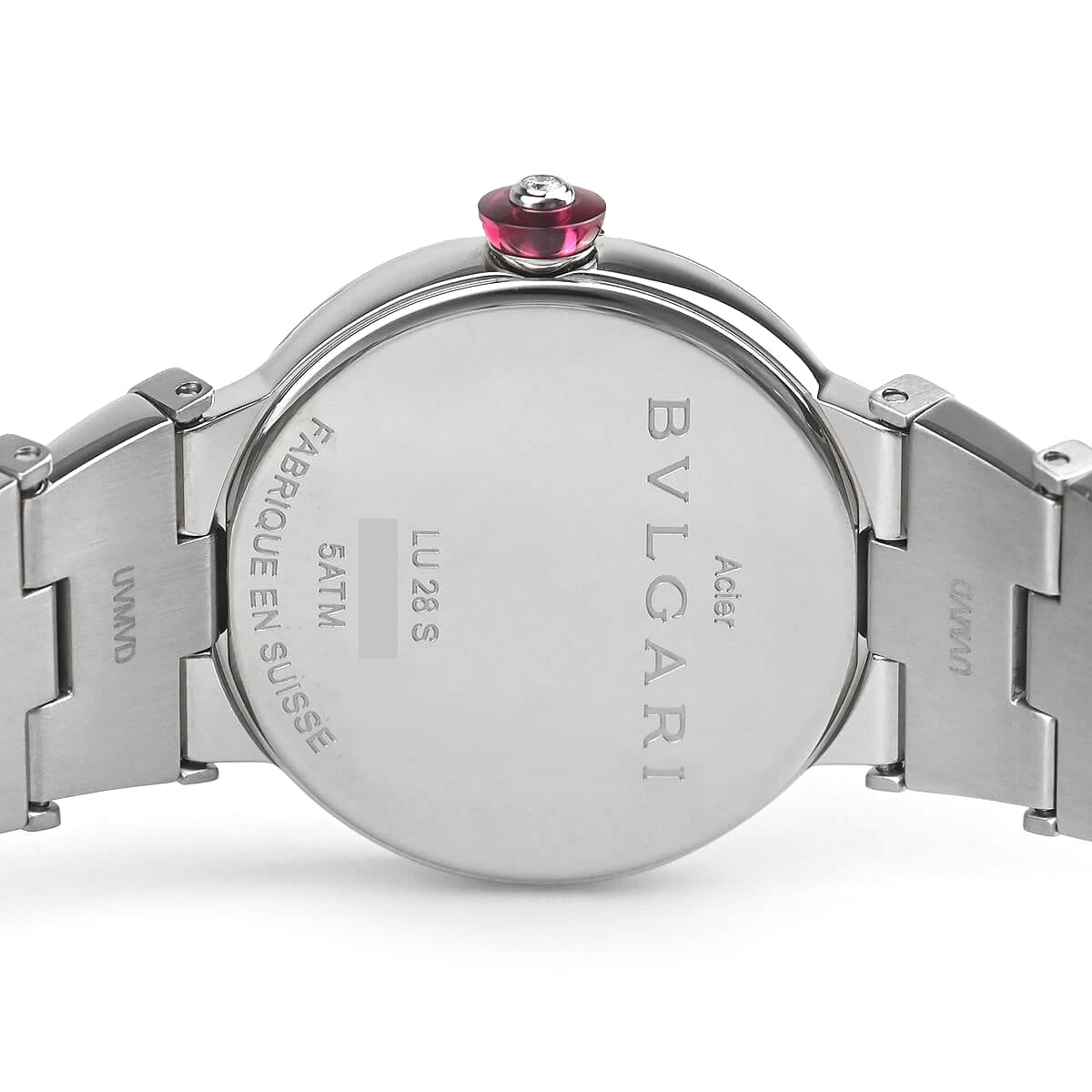 光を意味するイタリア語の“ルーチェ”とラテン語の“ルクス”から名づけられた「ルチェア」。カボションカットのピンクシンセティックサファイアを使用したリューズに、ダイヤモンドをマウントするなど、ハイジュエラーならではの細工が施された一本です。