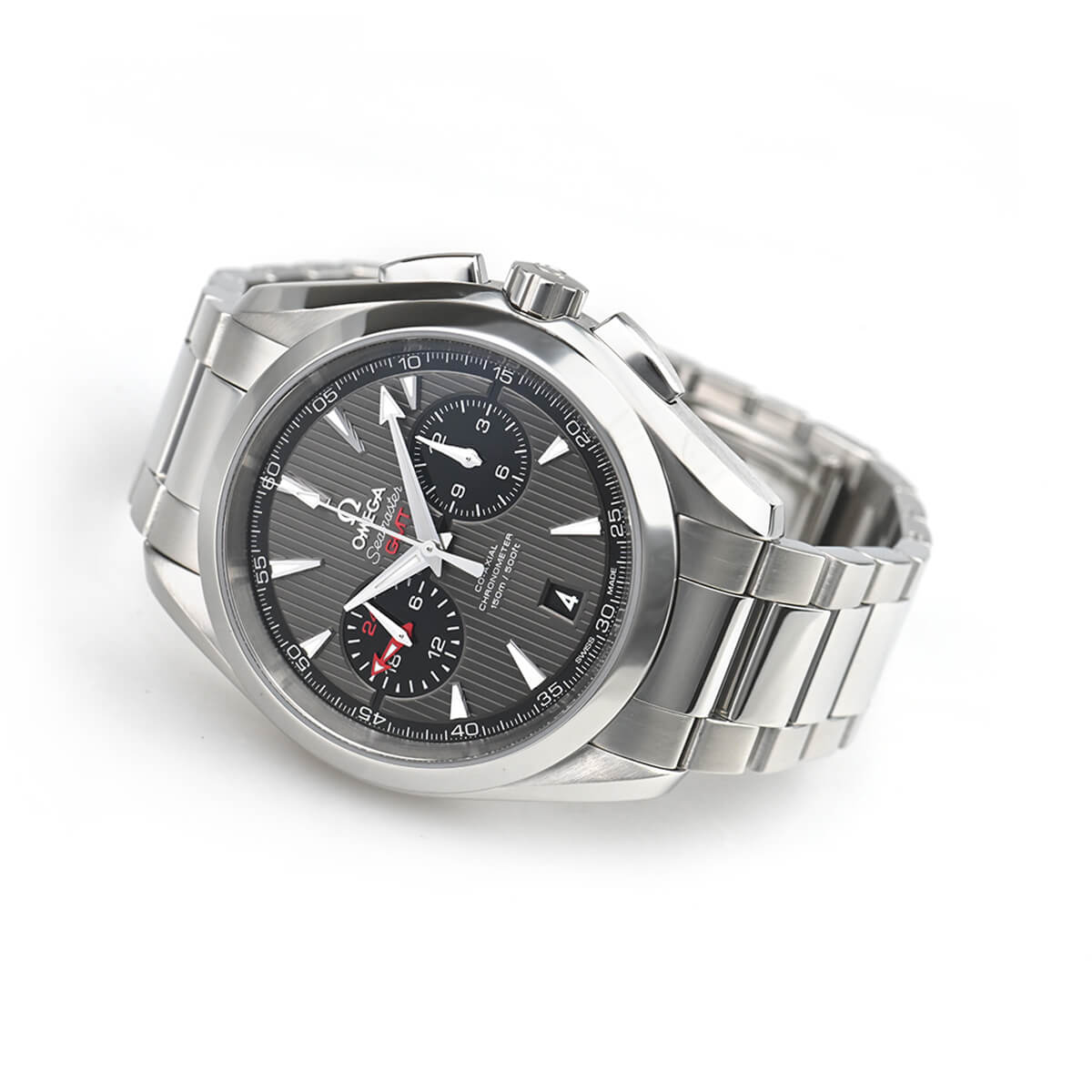 歴史有るペットネーム「シーマスター」を継承する2018年発表モデル「シーマスター アクアテラ クロノグラフGMT」。文字盤にあしらわれた豪華ヨットのウッドデッキをイメージしたチークコンセプトはそのままに、ムーブメントには新たにコラムホイール式コーアクシャルキャリバー9605を搭載します。