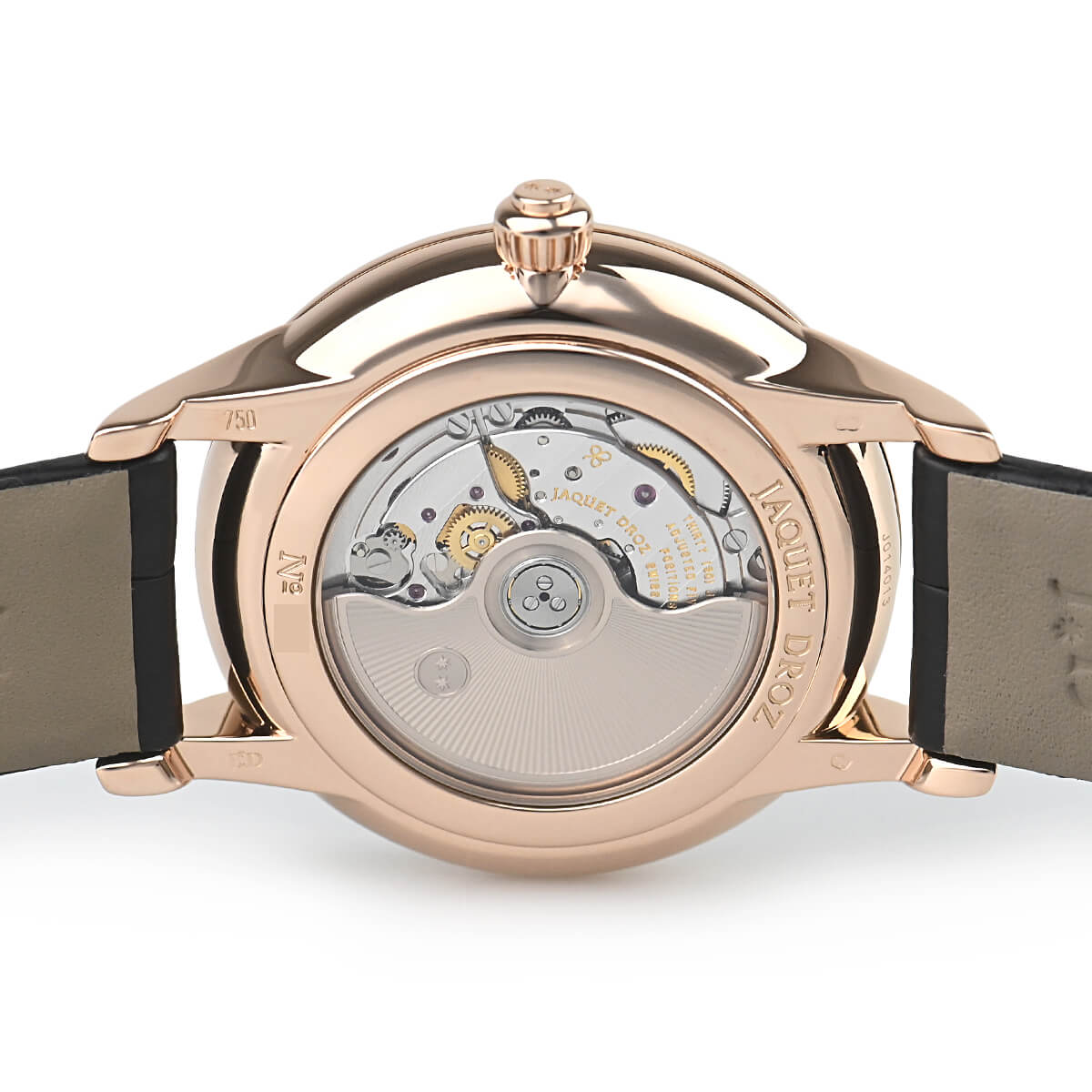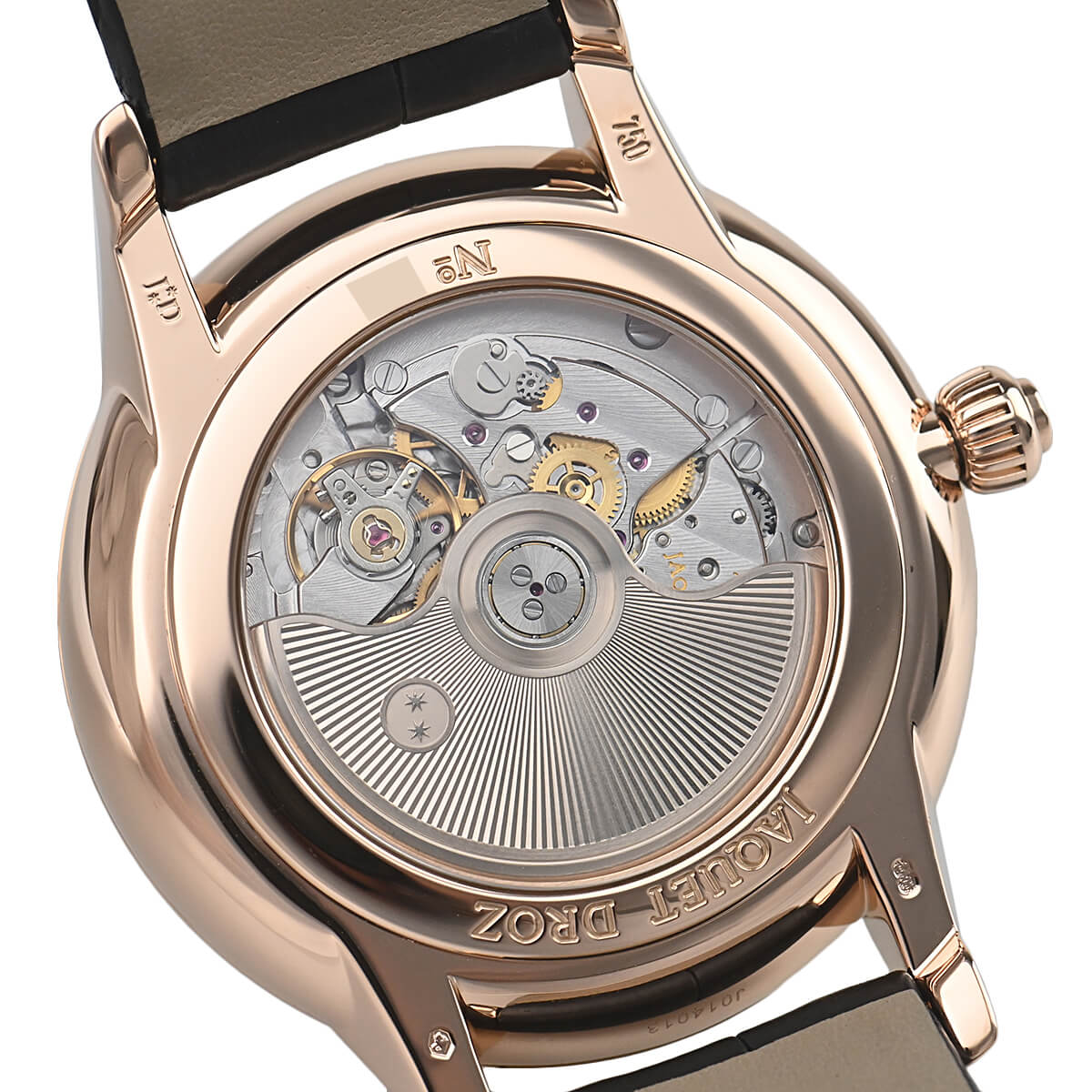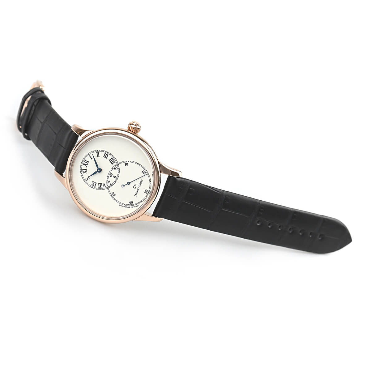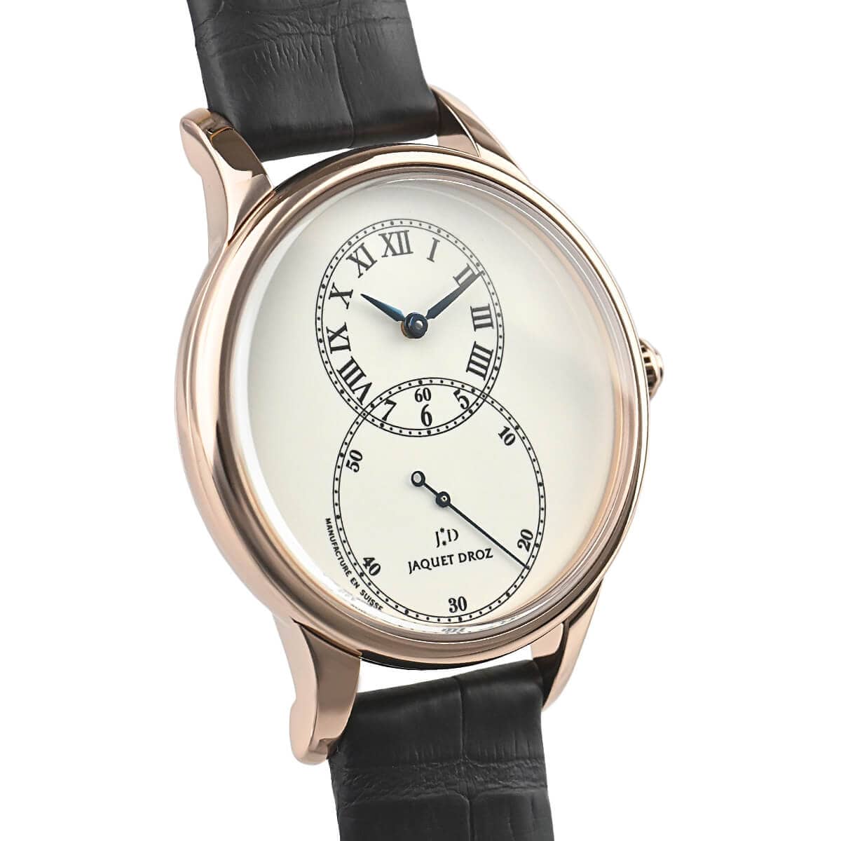 メインのダイヤルよりも大きなスモールセコンドが特徴の「グラン・セコンド」。ジャケ・ドロー独自の意匠であり、ブランドを代表する人気モデルです。