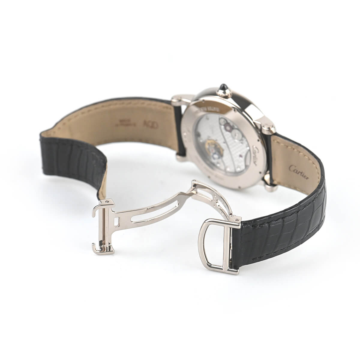 選ばれた高級コレクション「コレクション プリヴェ カルティエ パリ」の1ライン「ロトンド」。針軸の周りにあしらわれるバラモチーフを中心として放射状に広がっていくギョーシェ彫りが美しい一本です。