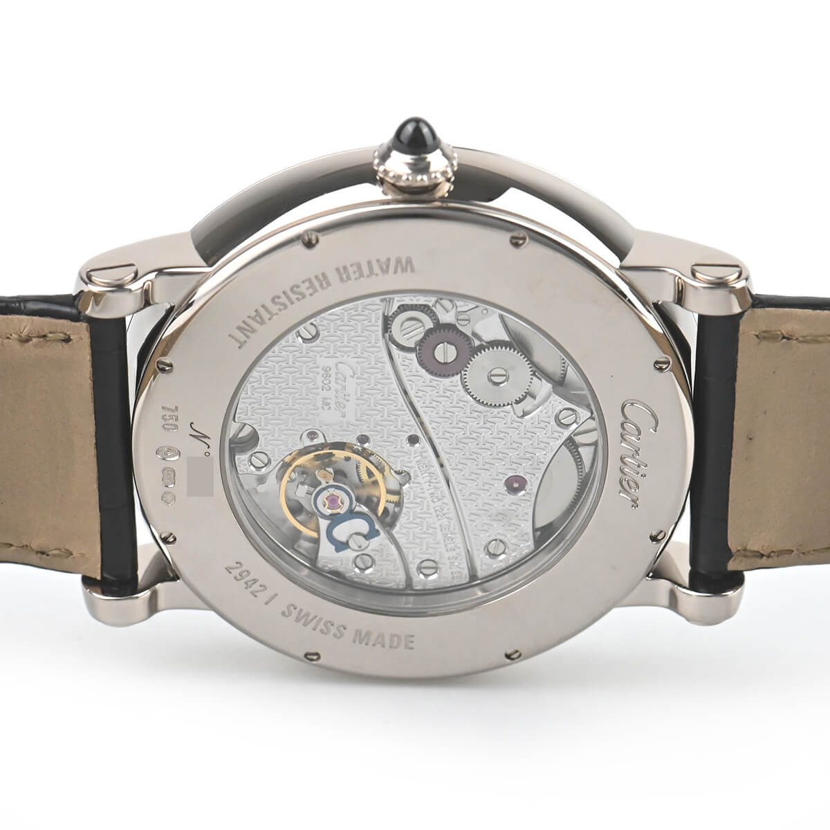 ケースはシースルーバックになっており、こだわりの手巻きムーブメントを眺めることができます。