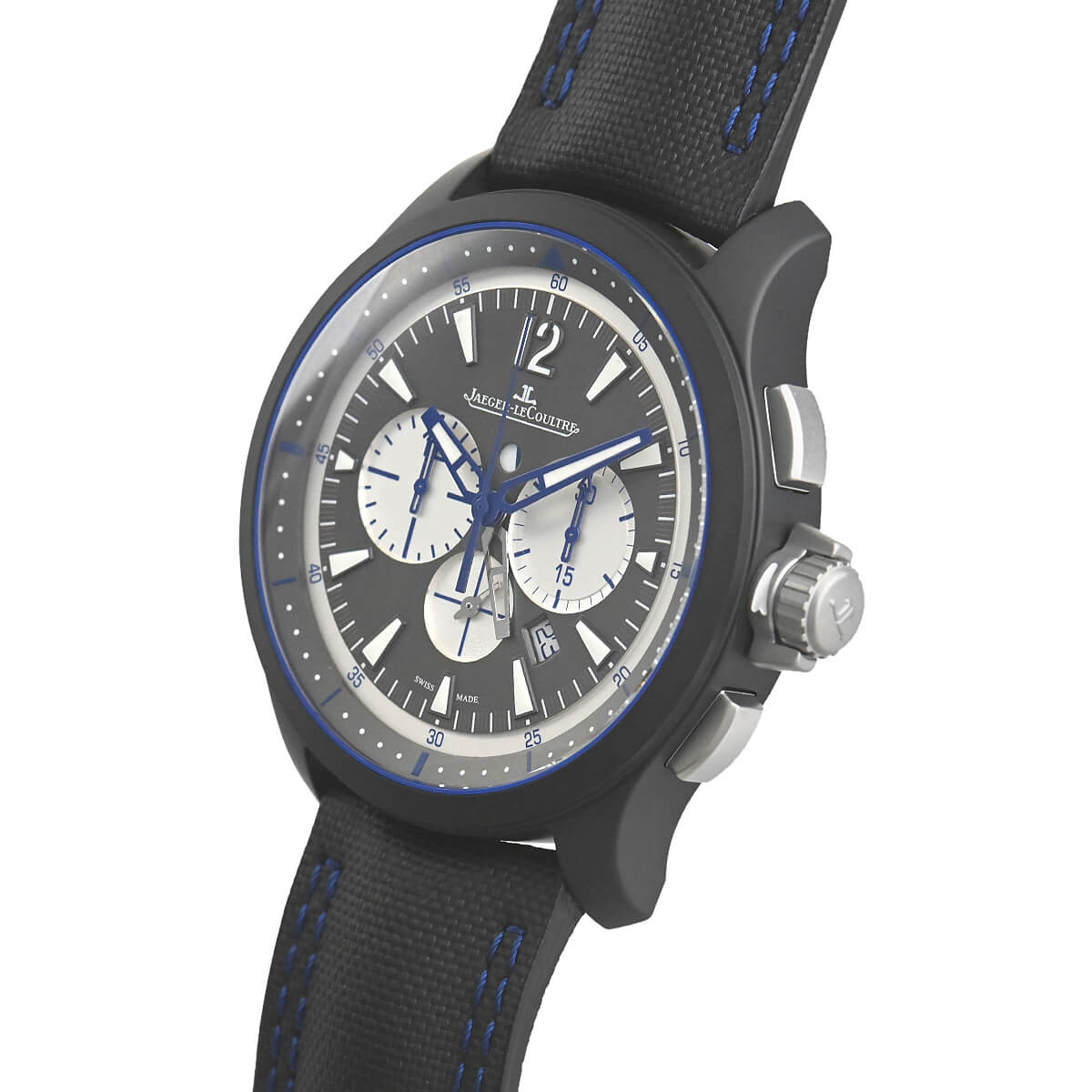 ジャガー・ルクルト自社製自動巻きクロノグラフ・ムーブメントを搭載した「マスターコンプレッサークロノグラフ セラミック」。ムーブメントにはピラーホイール式で65時間パワーリザーブのCal.757を搭載します。