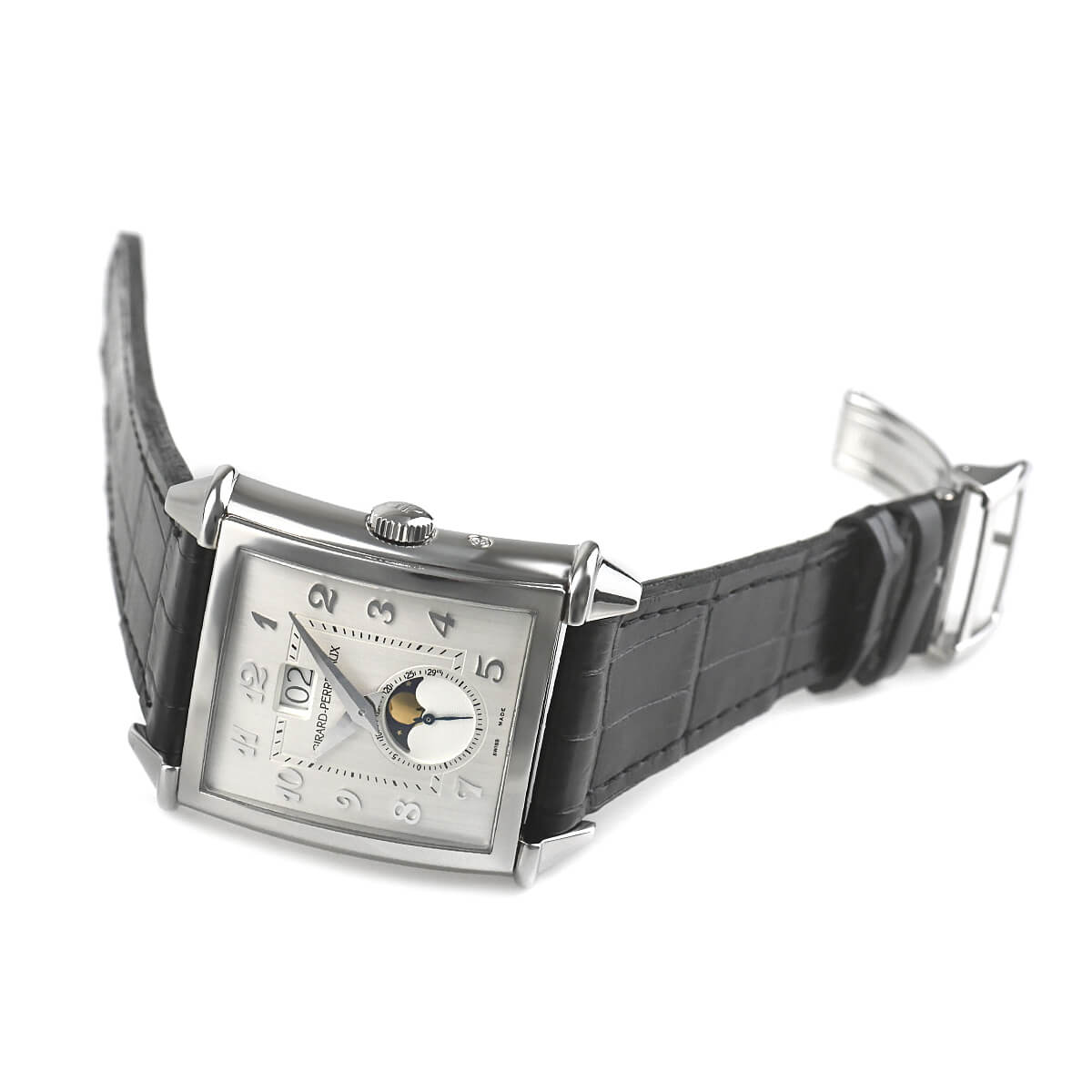 時計製造工芸の復活期である1945年、ジラール・ペルゴは、アールデコからインスパイアされた丸みをおびたレクタンギュラー(長方形)ケースのモデルを創作しました。「ヴィンテージ1945」シリーズは、1995年にその復刻版としてデザインされたシリーズです。