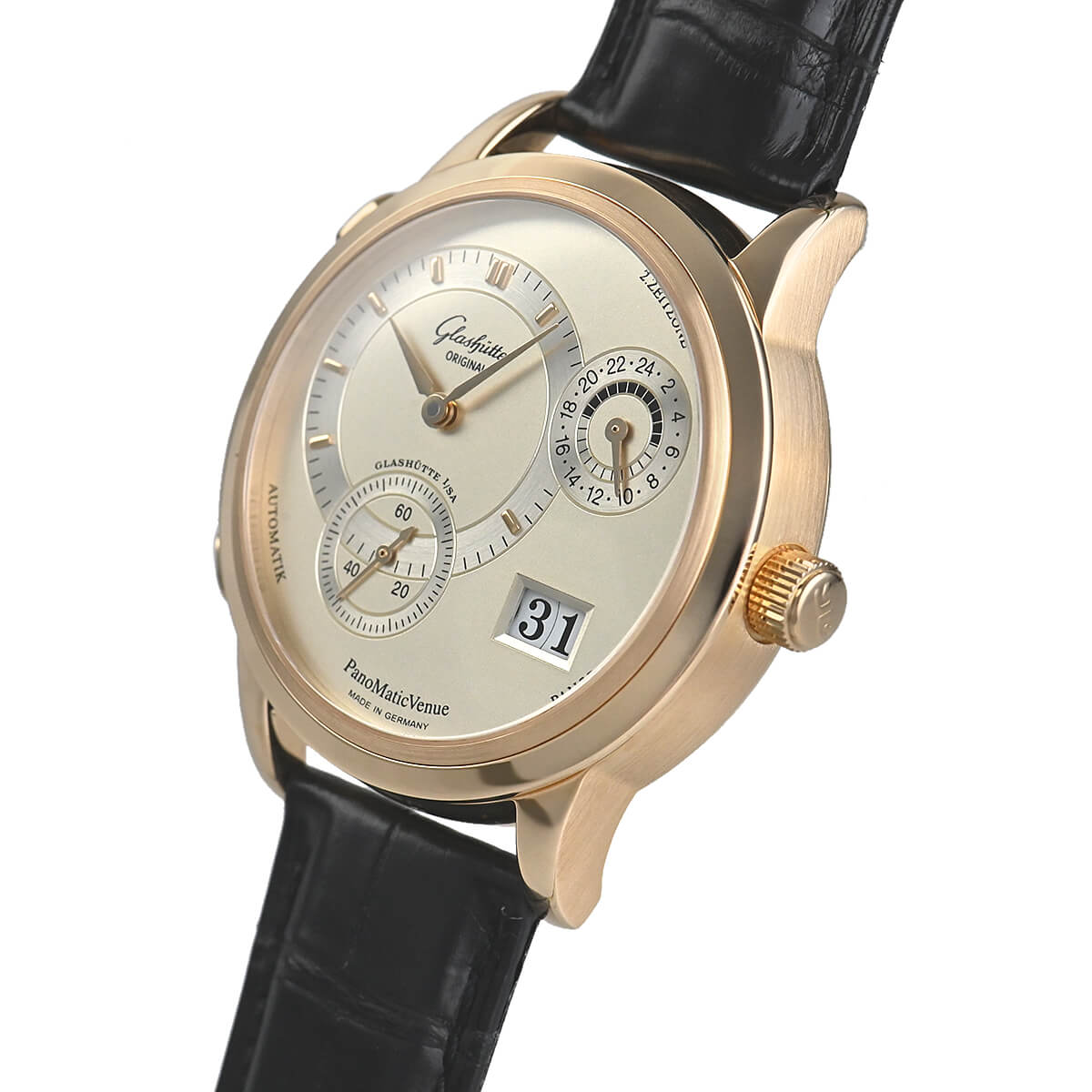 ブランド名にも入っている、グラスヒュッテ地方の伝統的なドイツ時計を製造する“グラスヒュッテ・オリジナル”。こちらの「パノマティックデイト」は、ビッグデイト表示を装備。ムーブメントには特徴的な3/4プレートの他にも、ダブルスワンネック緩急針や地板に施された美しいコート・ド・ジュネーブ仕上げなど、ドイツ時計の良さを詰め込んだモデルです。