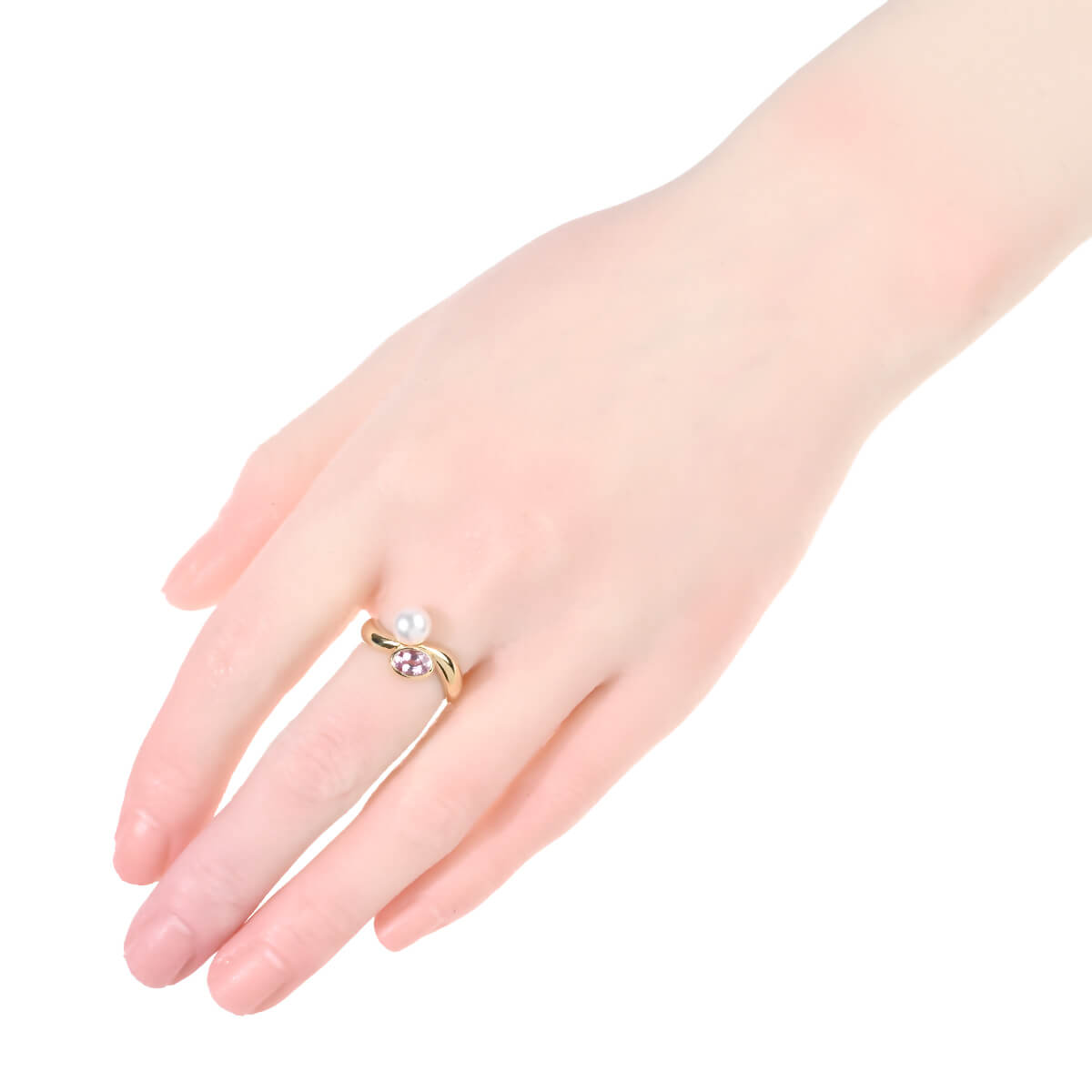 1893年に世界で初めて真珠の養殖に成功し、真珠に生涯を捧げ、「Pearl King(真珠王)」とまで呼ばれ歴史にその名を刻んだ「御木本幸吉」が、“世界中の女性を真珠で飾りたい”と夢を抱いて創業した『MIKIMOTO(ミキモト)』。以来、養殖真珠のオリジネーターとして120年以上も真珠の魅力と向き合い、“真珠と言えばMIKIMOTO”と言われるほどに誰もが知る、日本を代表する世界のジュエラーとなりました。まろやかに優しく光る1粒のパールと透明感溢れる可憐なピンクトパーズがセッティングされた、イエローゴールド製リング。波のように滑らかな曲線を描くゴールドマテリアルに天然石ならではの瑞々しさあふれるピンクトパーズとパールの上品な輝きのコントラストが、手元を可憐に、優美に印象づけます。ワーキングシーンからデイリーのカジュアルまで、どんなスタイリングにもマッチする、さりげなくも愛らしい個性を感じられるパールジュエリーです。
