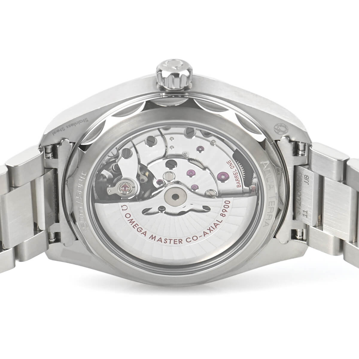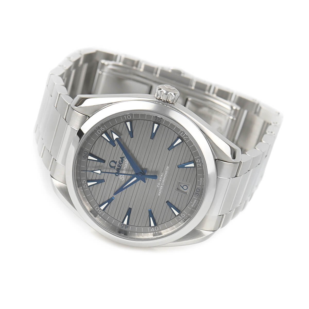 歴史有るペットネーム「シーマスター」を継承する、2017年に発表された「シーマスター アクアテラ コーアクシャル マスタークロノメーター」。こちらはケース径41mmのメンズモデルです。文字盤にあしらわれた豪華ヨットのウッドデッキをイメージしたチークコンセプトはそのままに、ムーブメントには新たにMETAS認定マスタークロノメーターのコーアクシャルキャリバー8900を搭載します。
