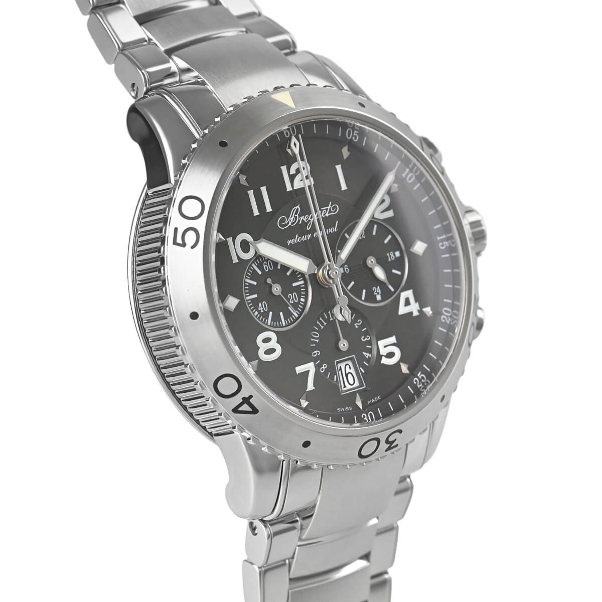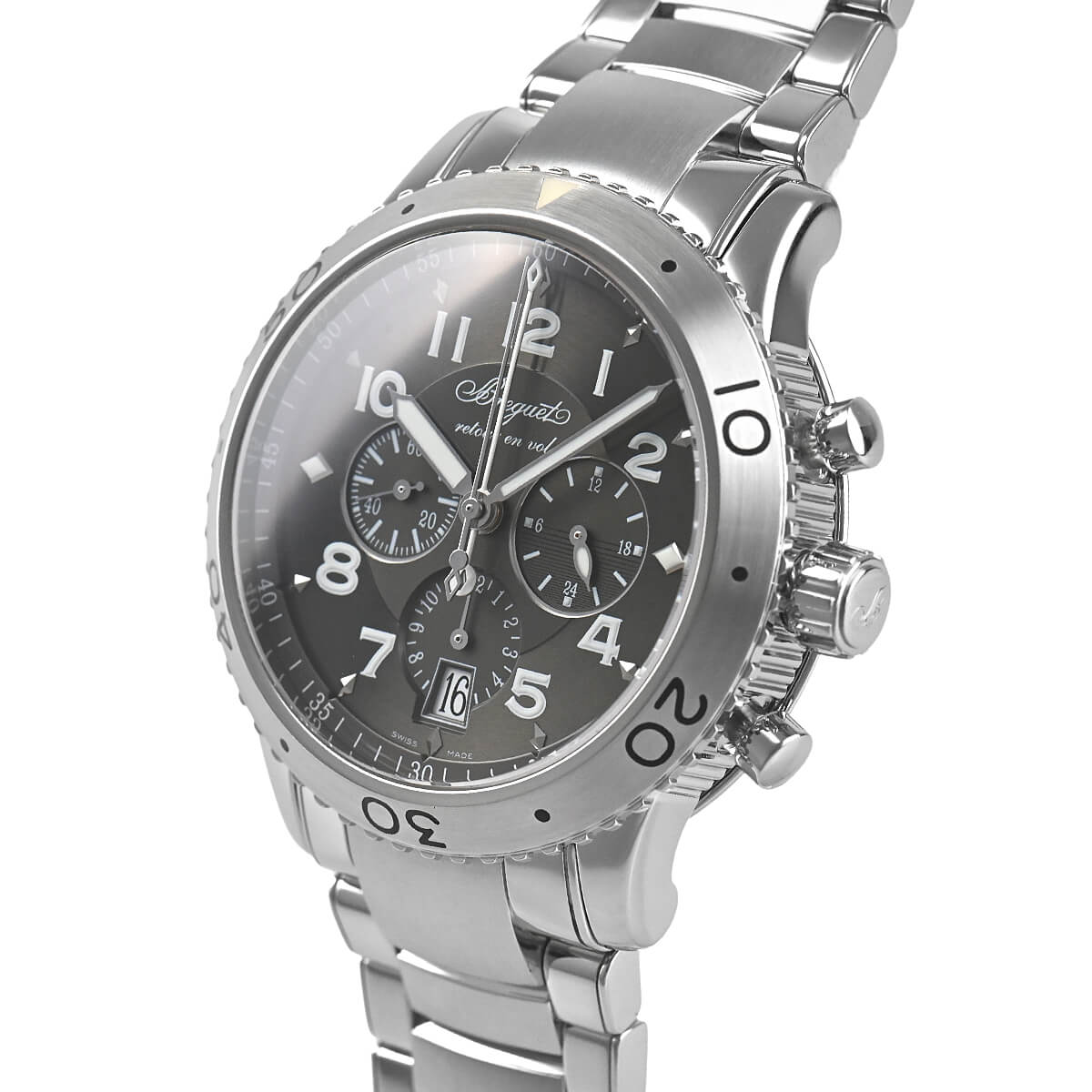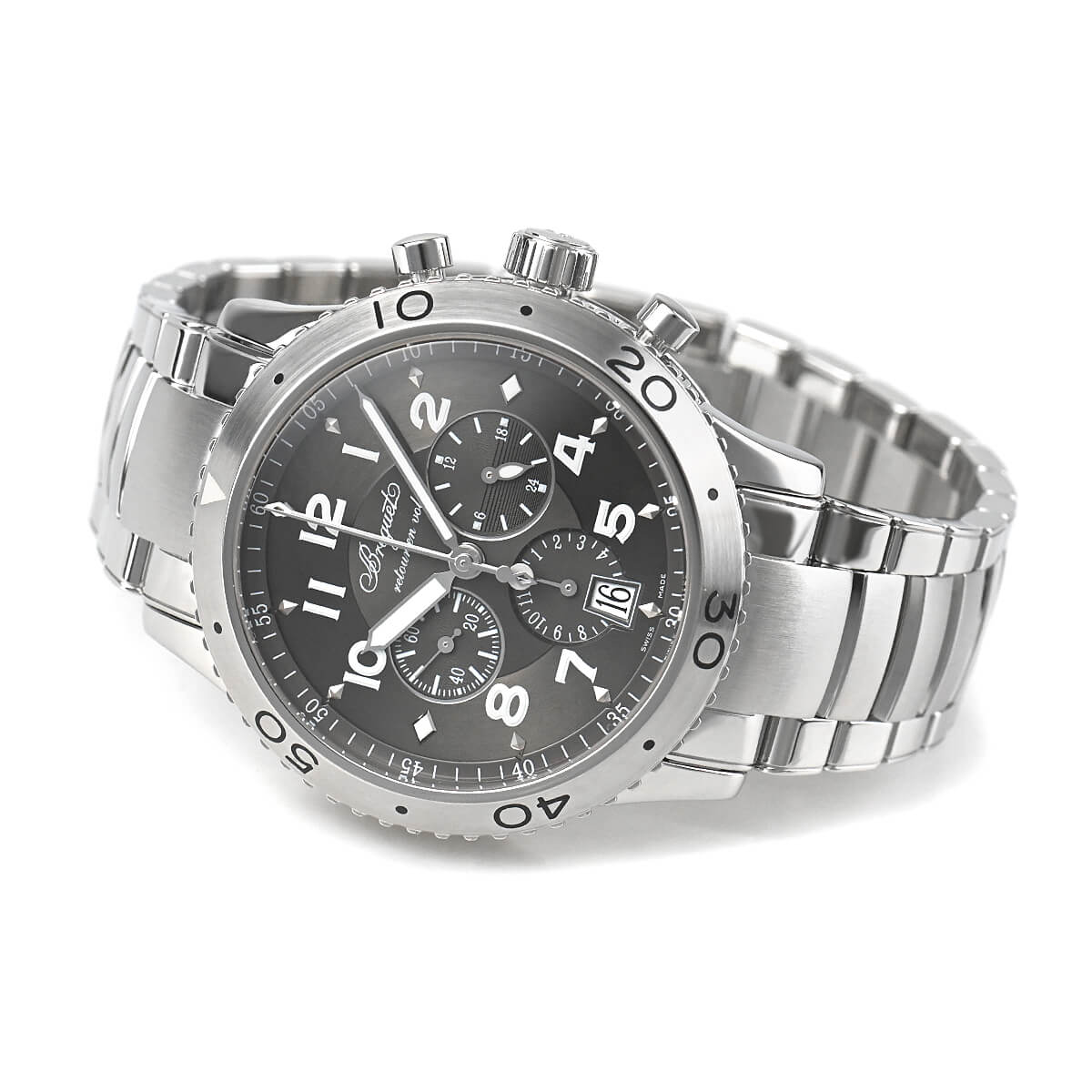 フランス軍の航空部隊用として開発されたタイプXXを元に、現代風なアレンジを加えた「トランスアトランティック」。ミリタリーウォッチならではの操作性・視認性の良さはそのままに、ブレゲ特有のコインエッジなどで高級感も漂います。